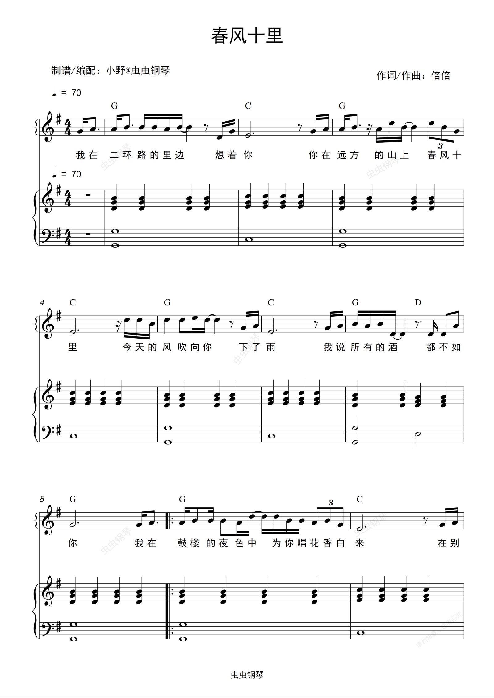 钢琴谱:春风十里(和弦弹唱版)