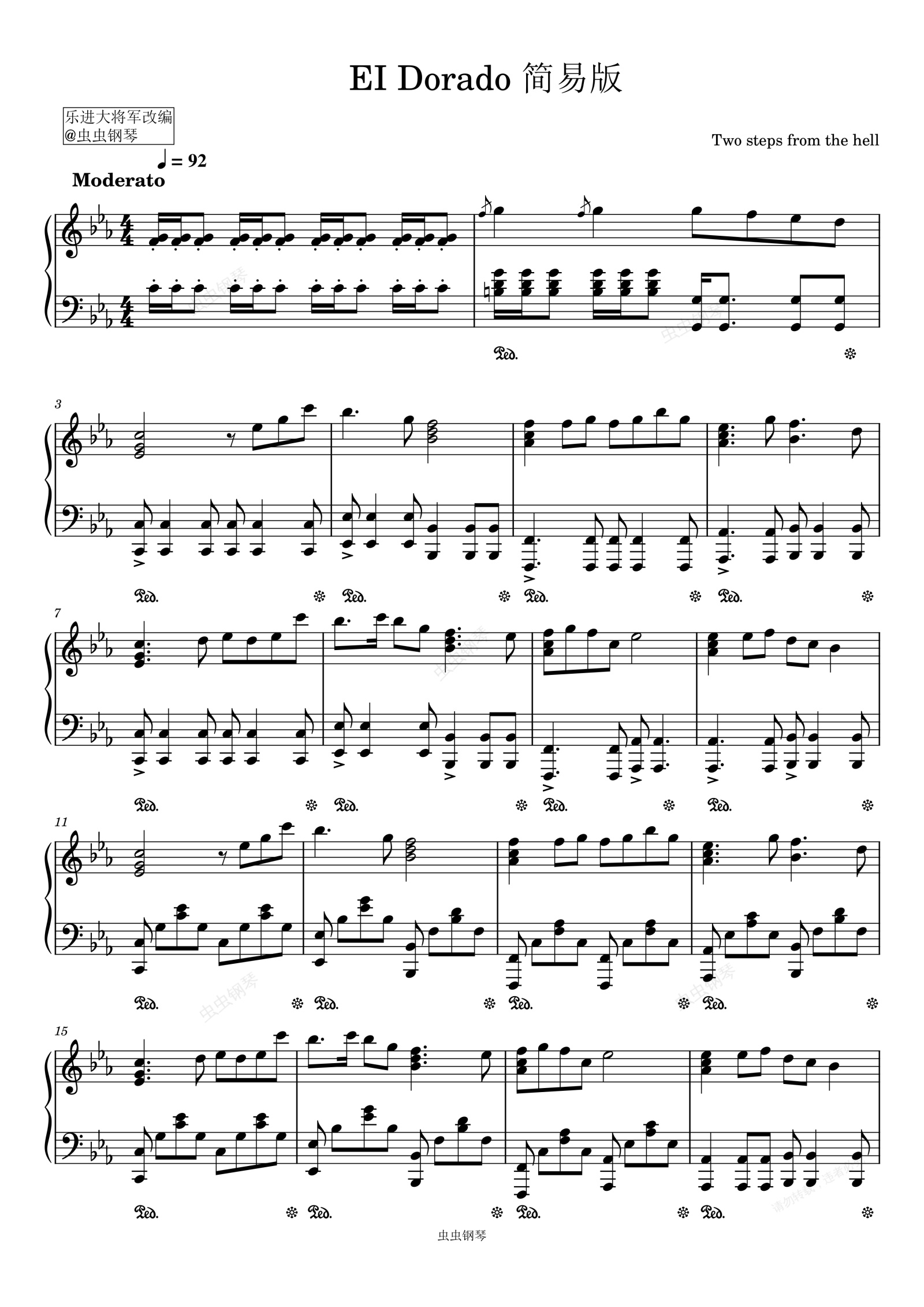 钢琴谱:史诗级战歌 EI Dorado 简易初级版