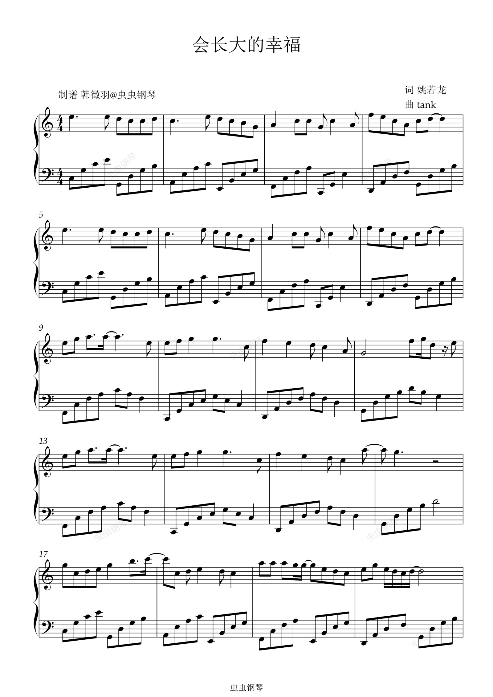 钢琴谱:tank  会长大的幸福