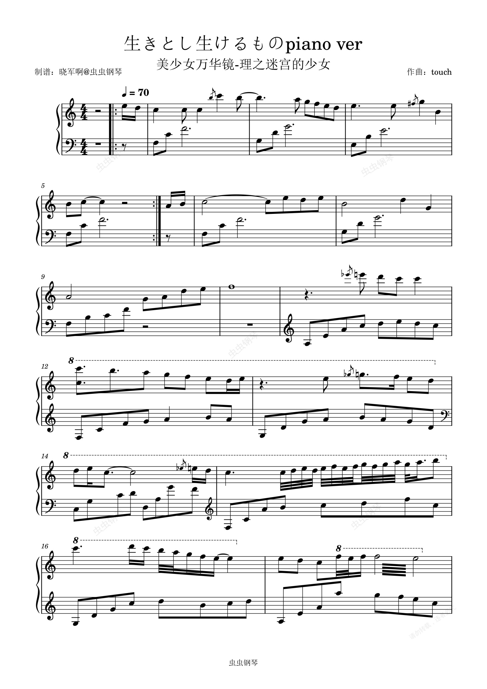 钢琴谱:【美少女万华镜】 生きとし生けるものpiano ver