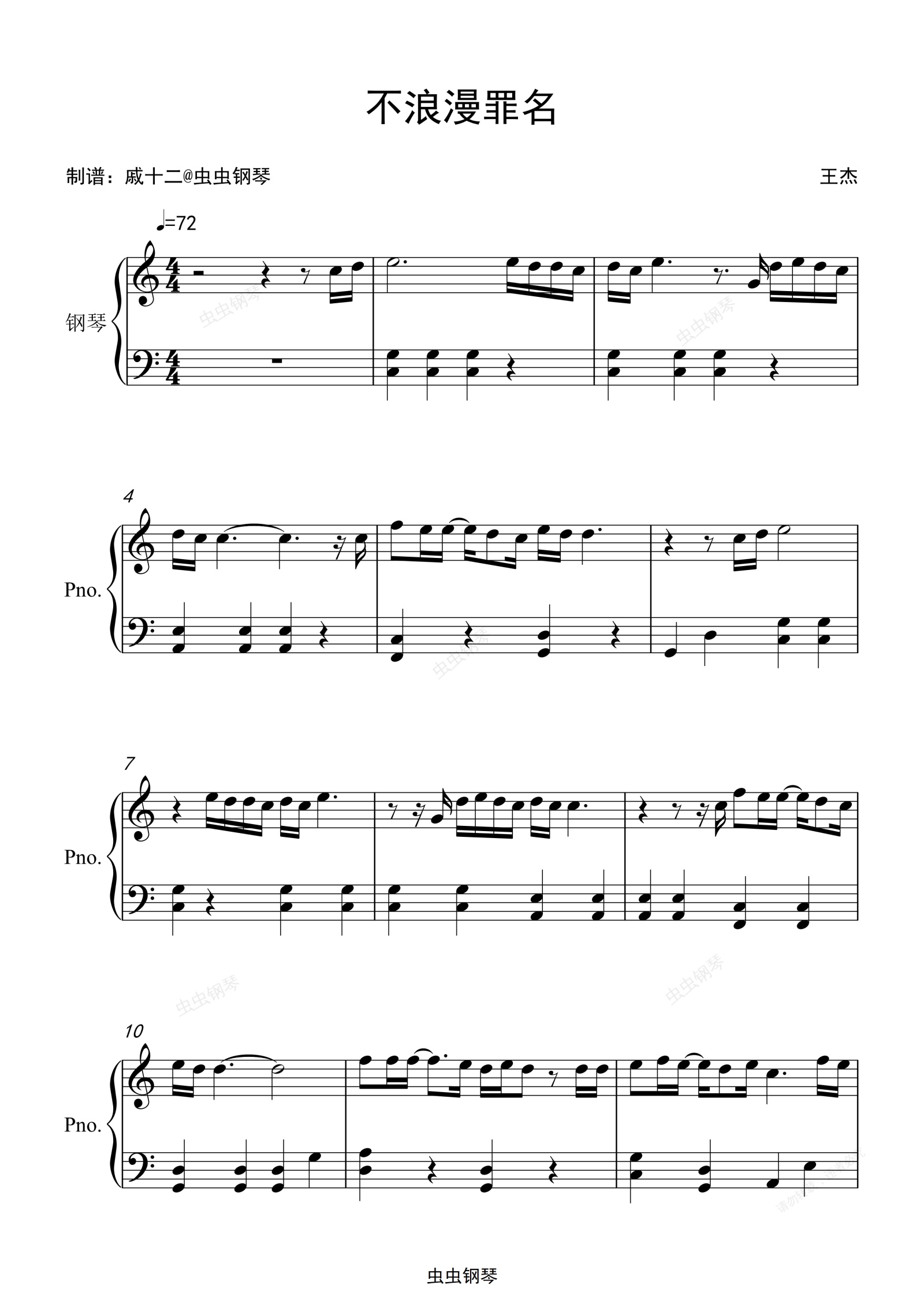 钢琴谱:不浪漫罪名-C调简单版