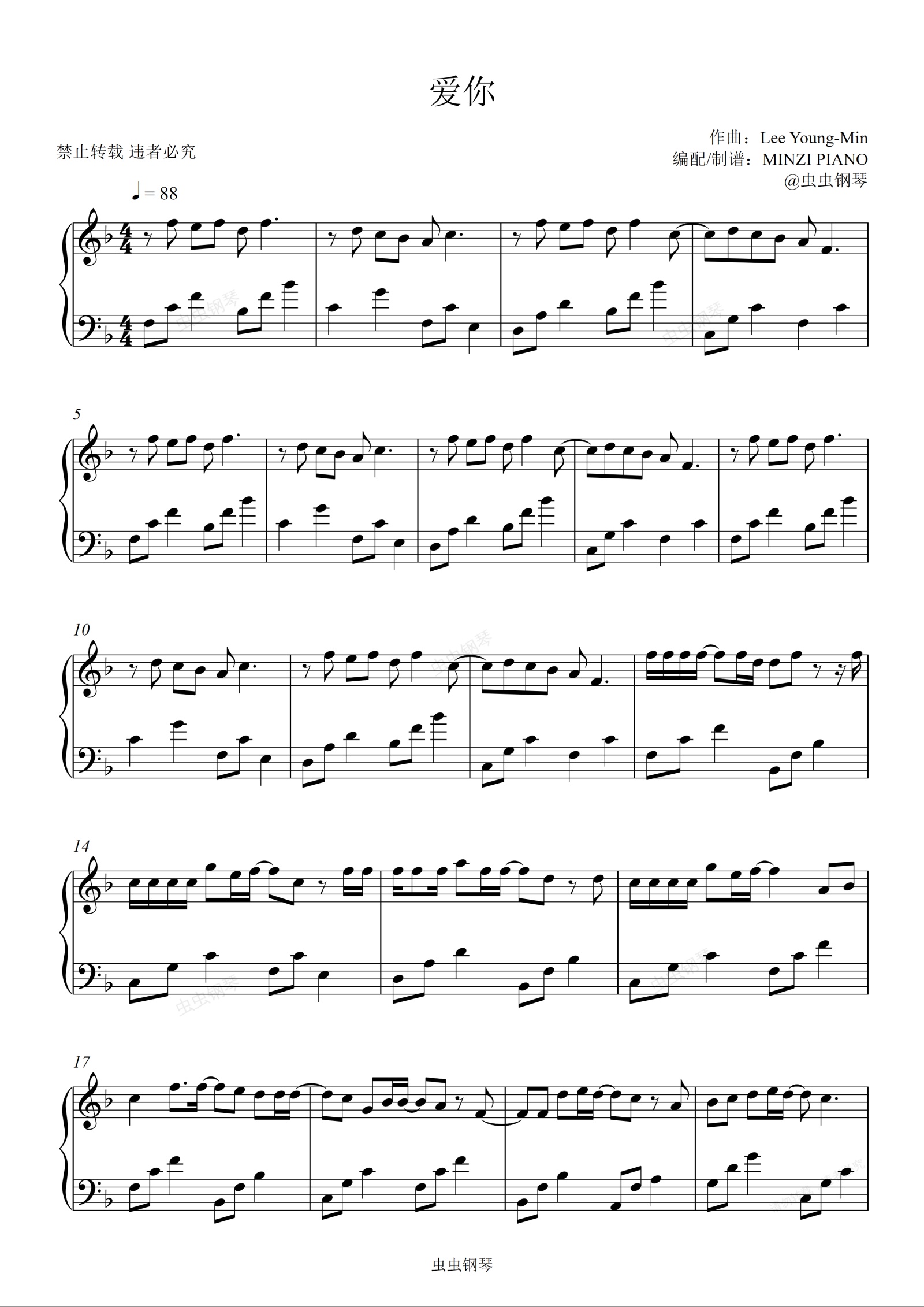 钢琴谱:王心凌《爱你》原调 好听易弹