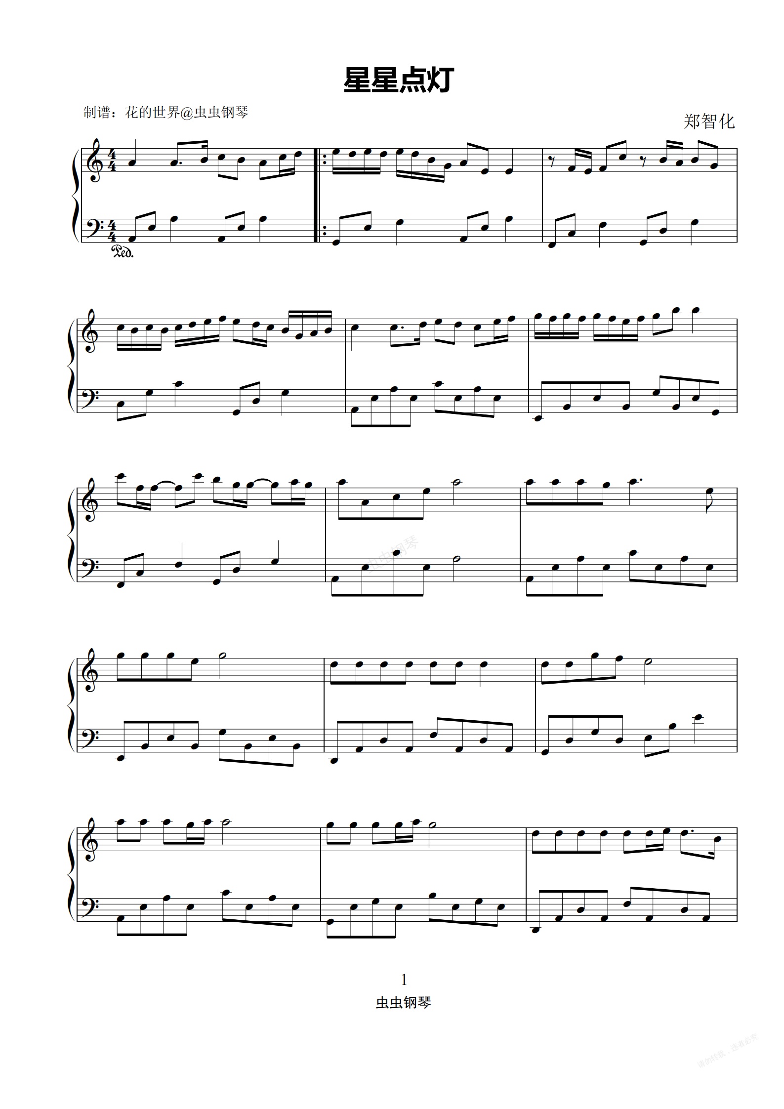 钢琴谱:星星点灯 C调简易版 王心凌/郑智化