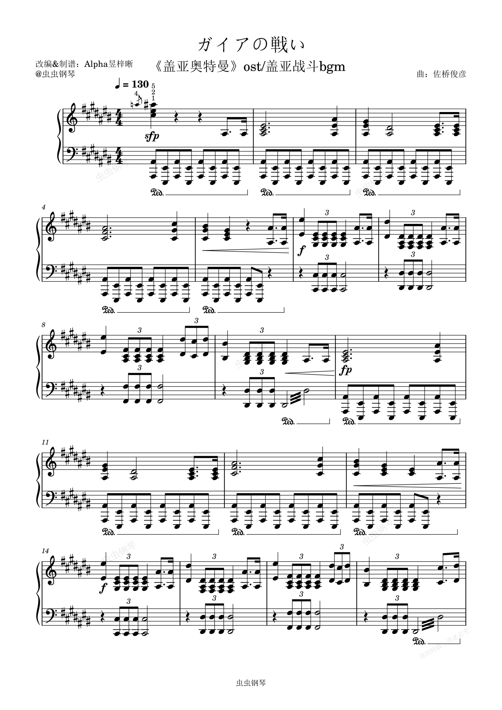 钢琴谱:ガイアの戦い 盖亚奥特曼 特摄剧