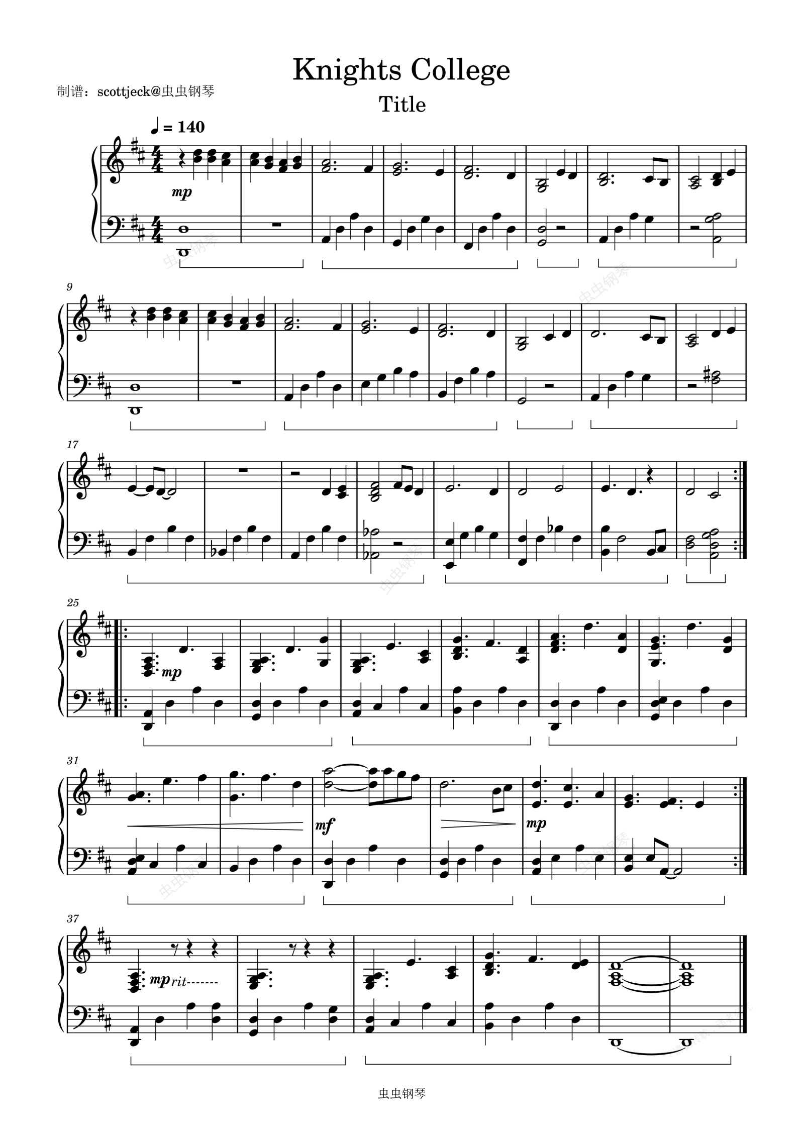 钢琴谱:骑士学院 游戏 Knights College - Title