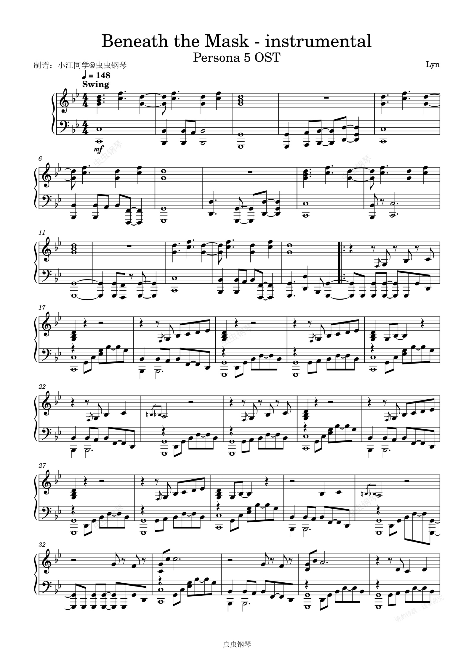 钢琴谱:Beneath the Mask Persona 5 OST 女神异闻录5