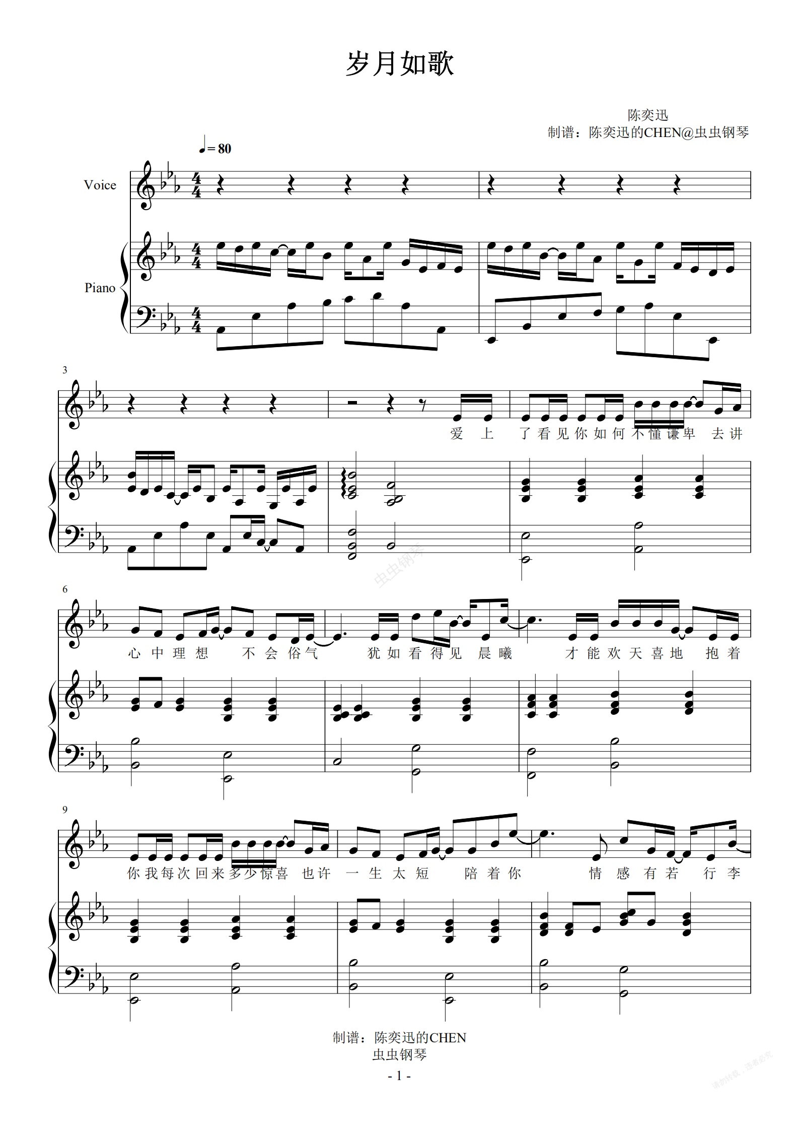 钢琴谱:岁月如歌 完美弹唱谱【附歌词】