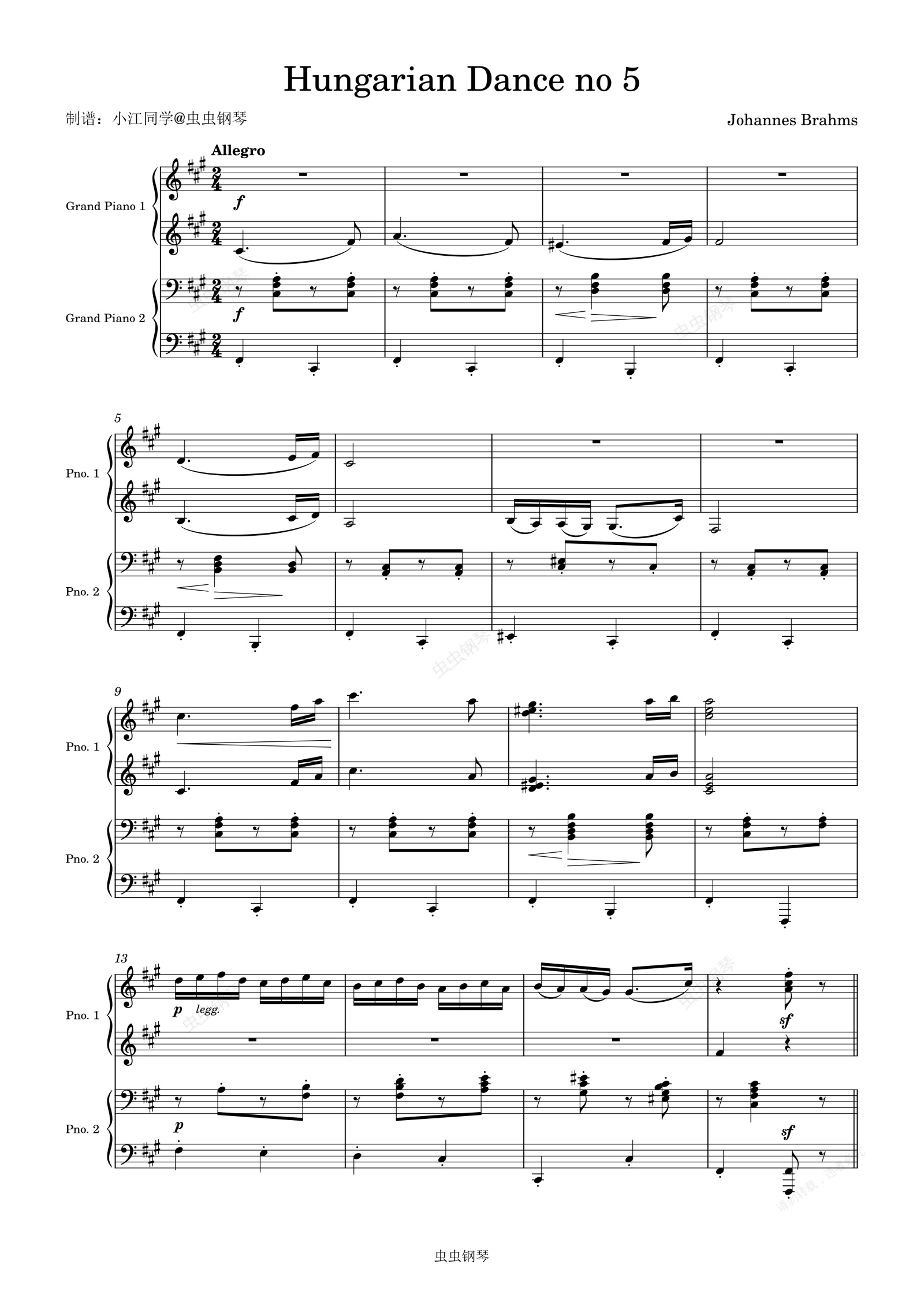 钢琴谱:匈牙利舞曲第五号 四手联弹