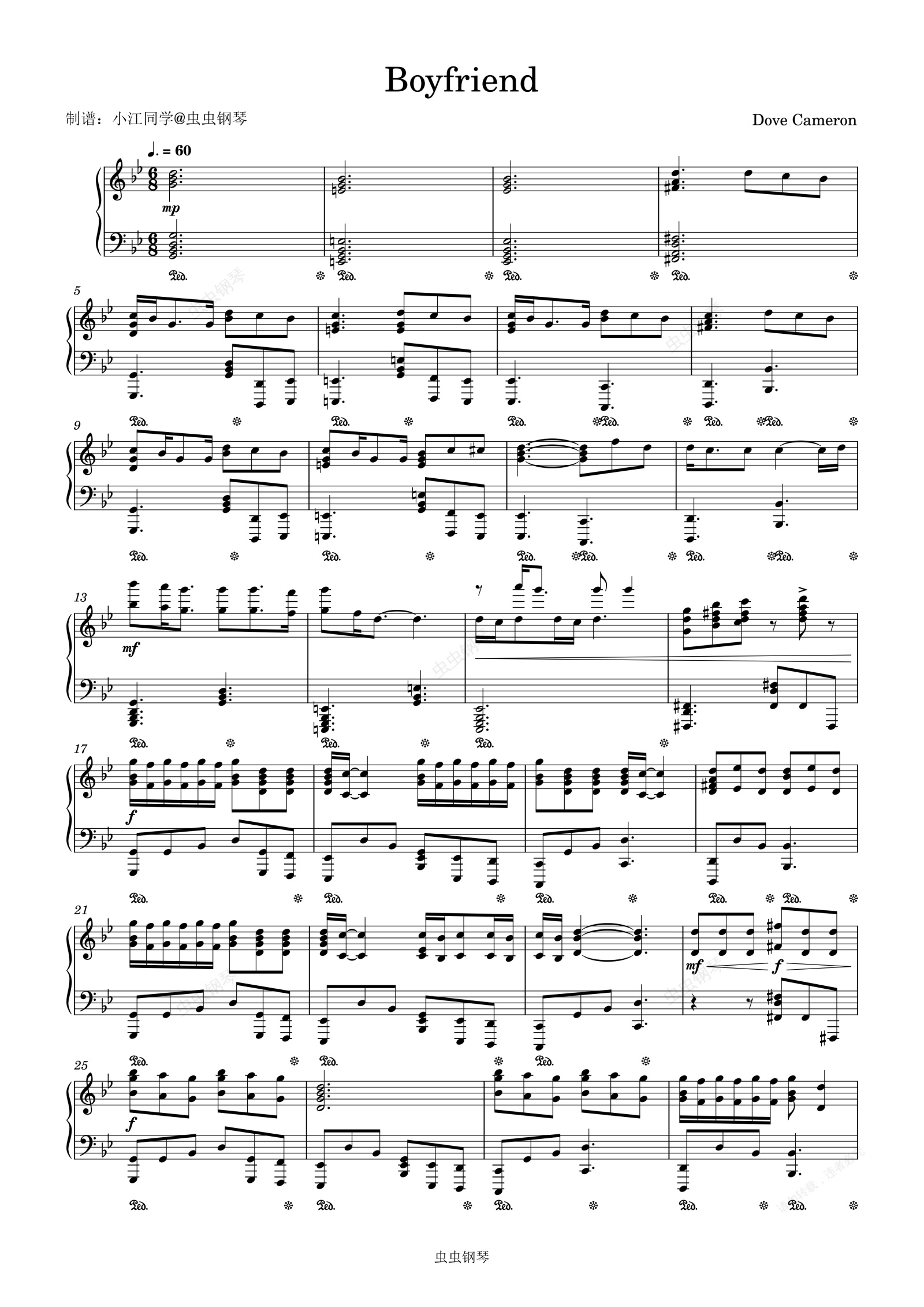 钢琴谱:Boyfriend Dove Cameron