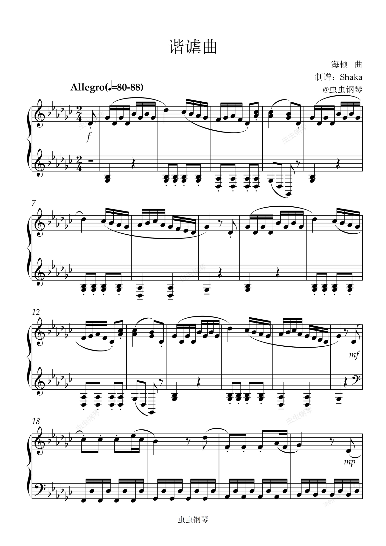 钢琴谱:谐谑曲 海顿 降G调较难版 中国音乐学院2级A组考级曲目