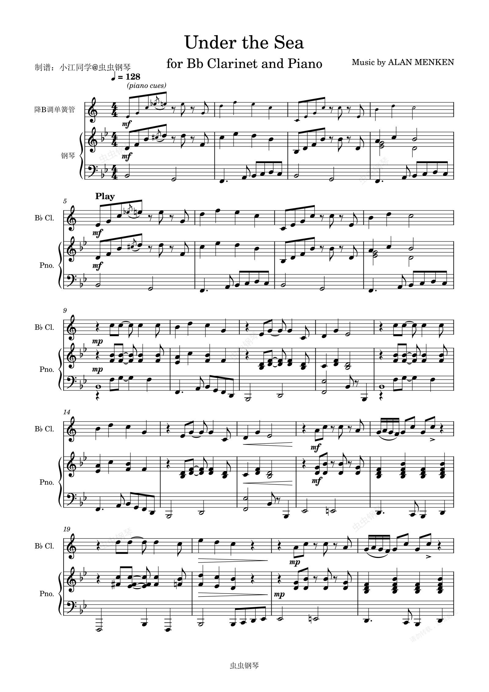 钢琴谱:Under The Sea 钢琴+单簧管