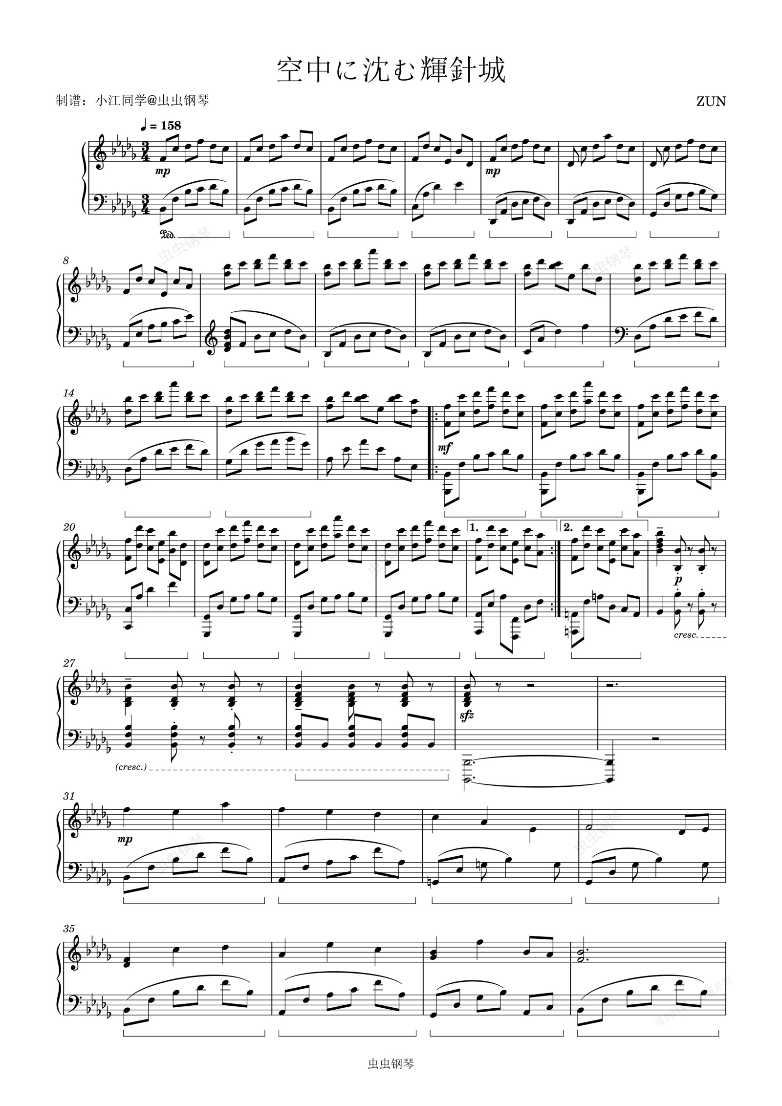 钢琴谱:空中に沈む輝針城 ZUN