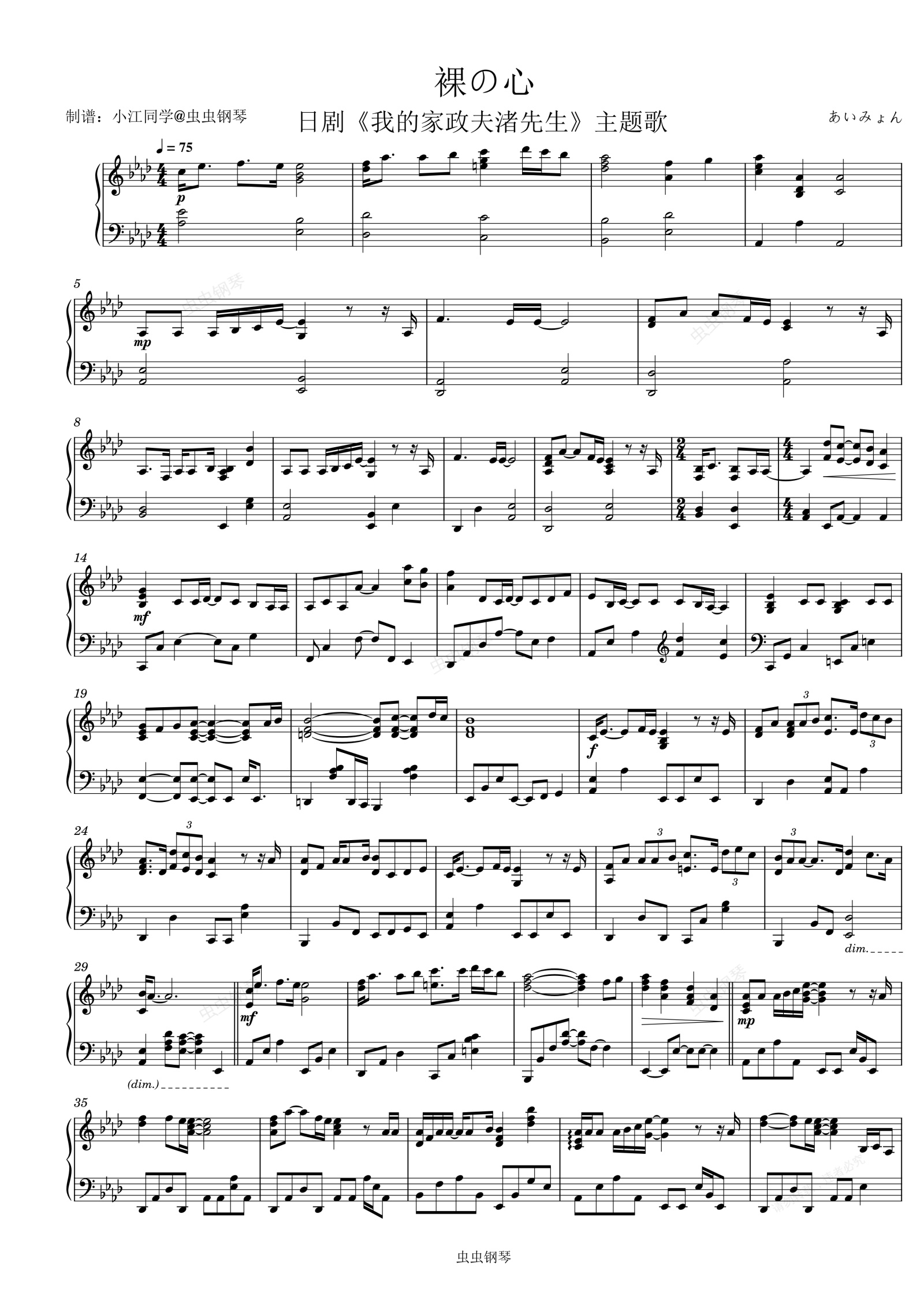 钢琴谱:裸の心 《我的家政夫渚先生》主题歌