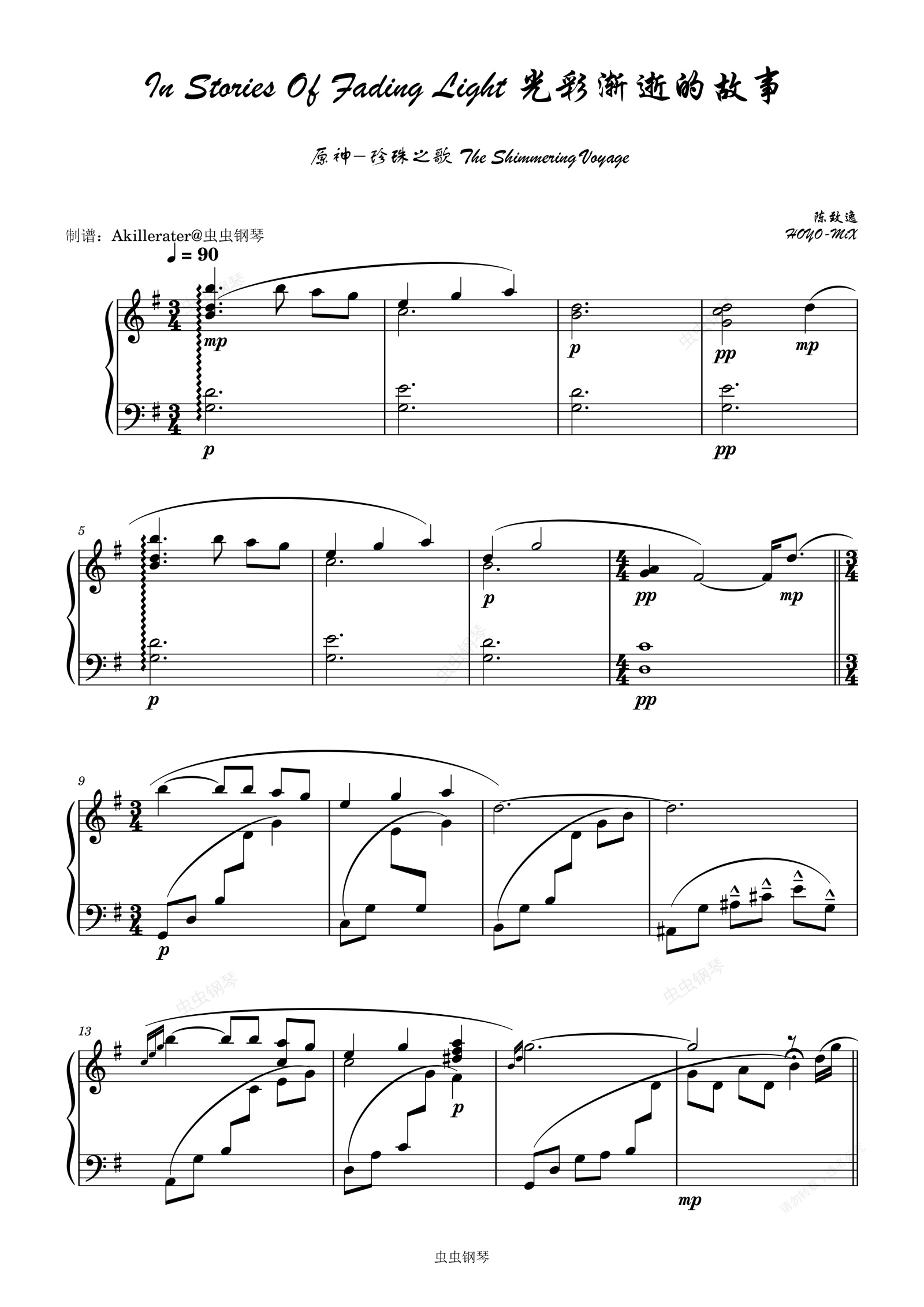 钢琴谱:In Stories Of Fading Light 光彩渐逝的故事《原神-珍珠之歌 The Shimmering Voyage》