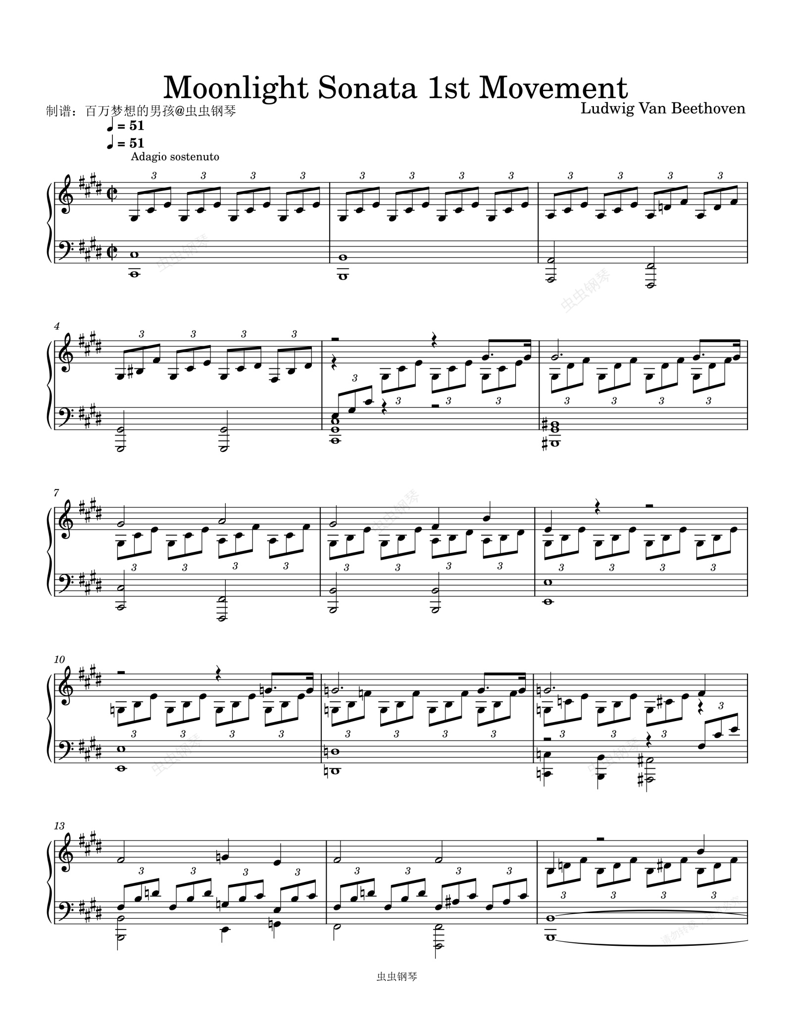 钢琴谱:月光奏鸣曲第一乐章(古典时代1750-1820)