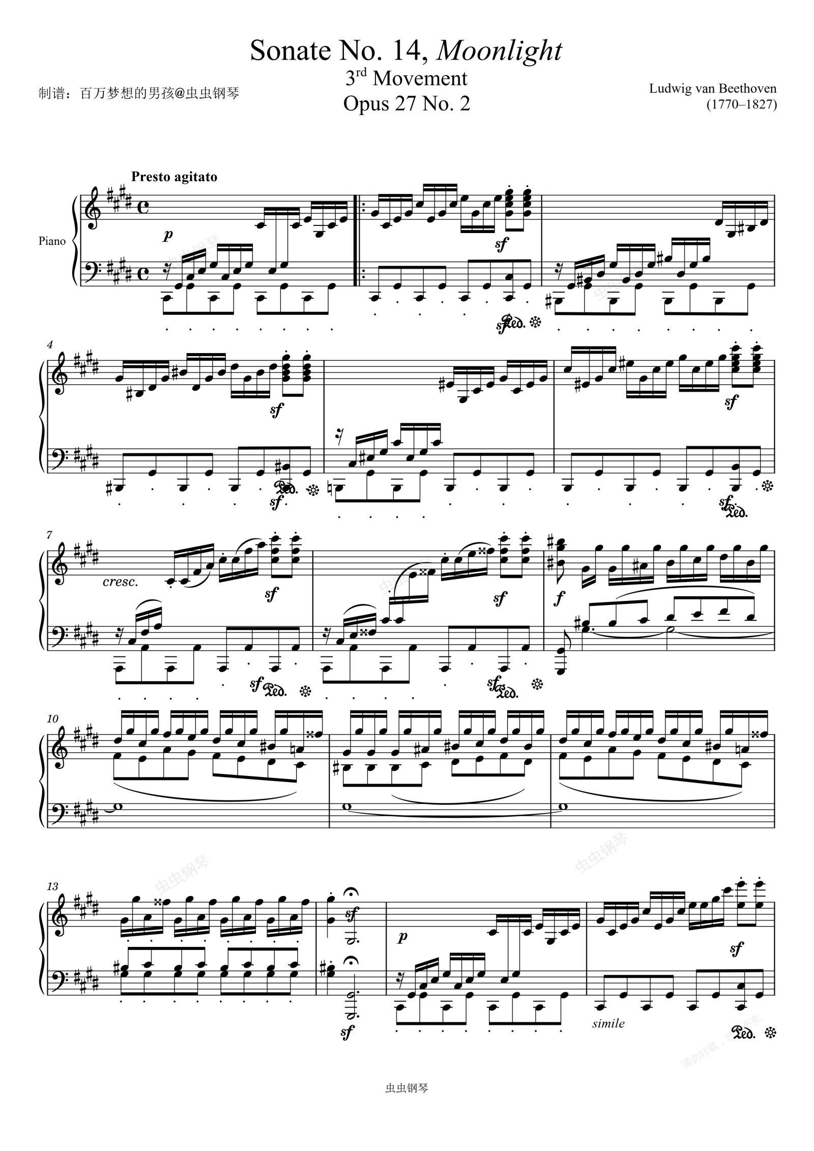 钢琴谱:月光奏鸣曲第三乐章(古典时代1750-1820)