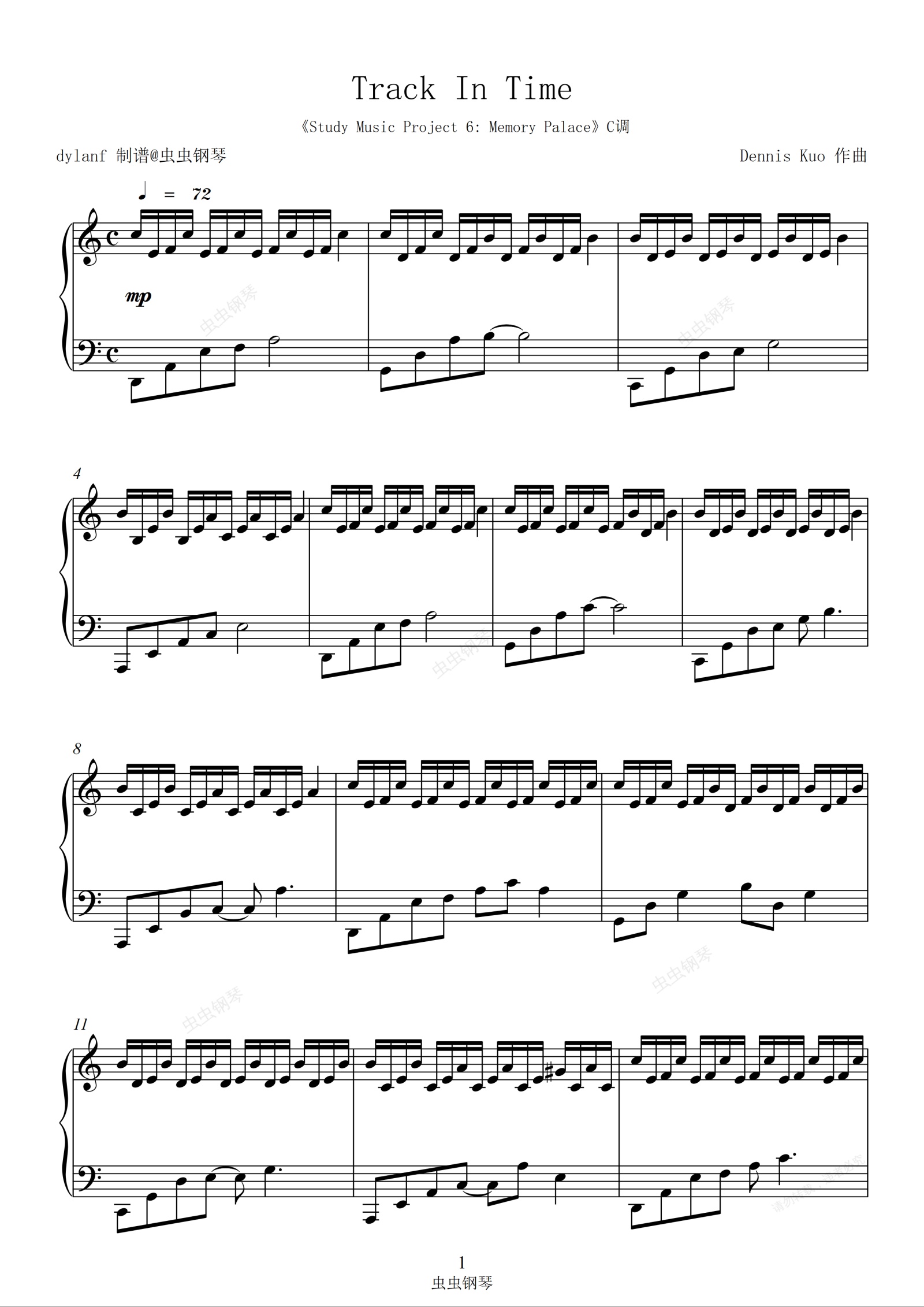 钢琴谱:C调治愈Track in Time好听好弹 热搜完整 Dennis Kuo