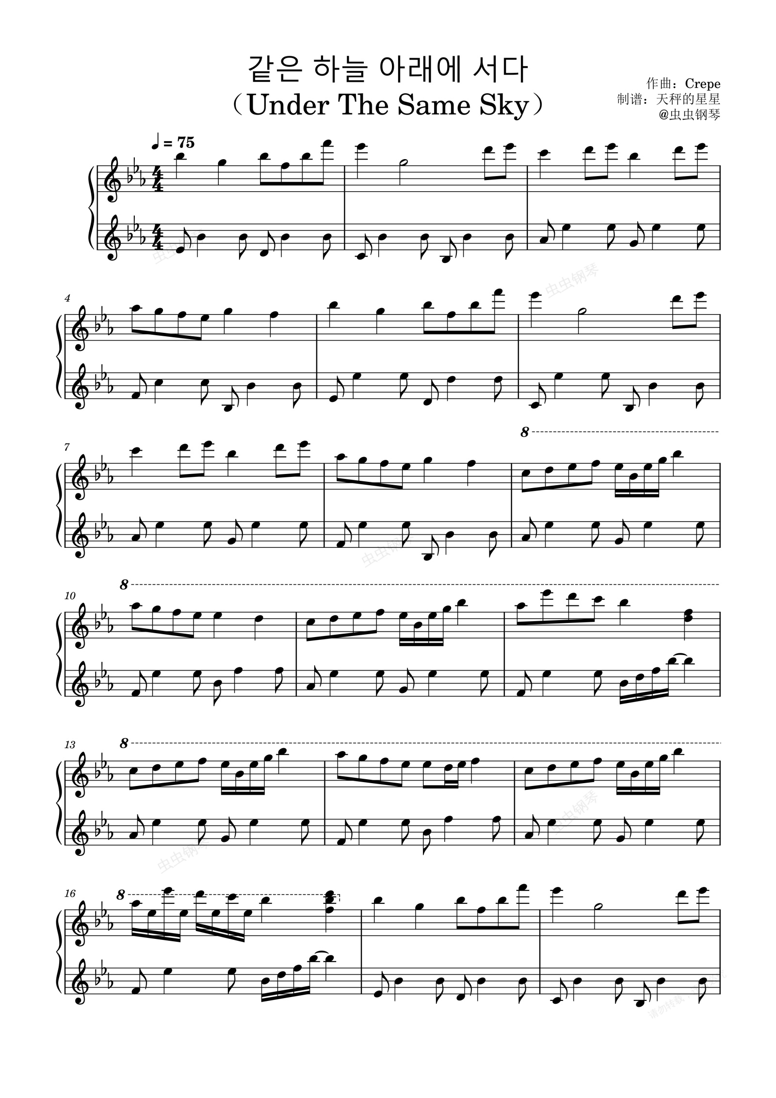 钢琴谱:같은 하늘 아래에 서다(Under The Same Sky)