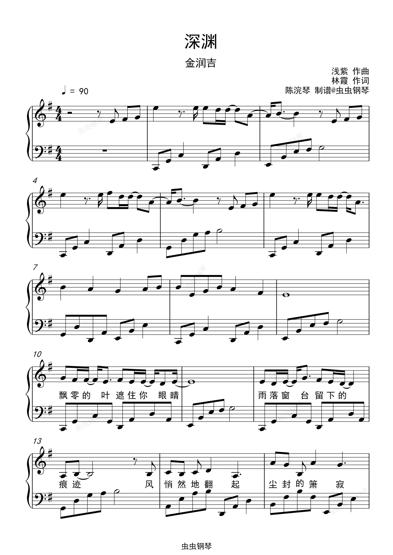 钢琴谱:深渊钢琴谱_G调五线谱_金润吉