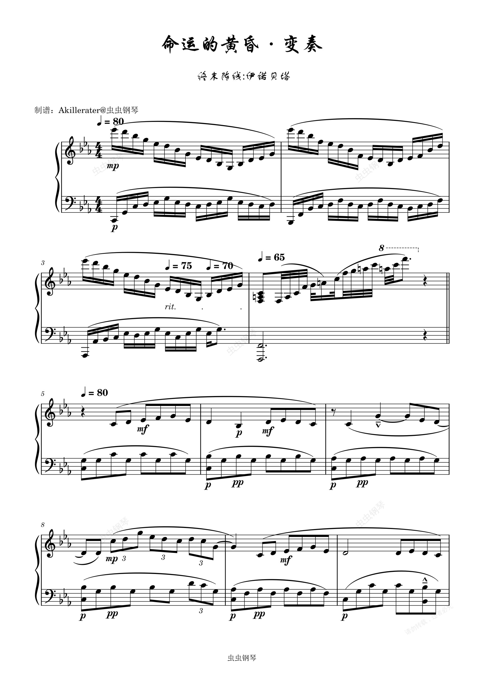钢琴谱:命运的黄昏·变奏《终末阵线:伊诺贝塔》界面曲