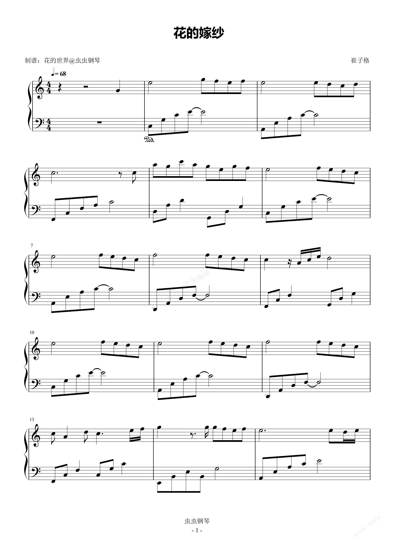 钢琴谱:花的嫁纱 C的简易版 王心凌