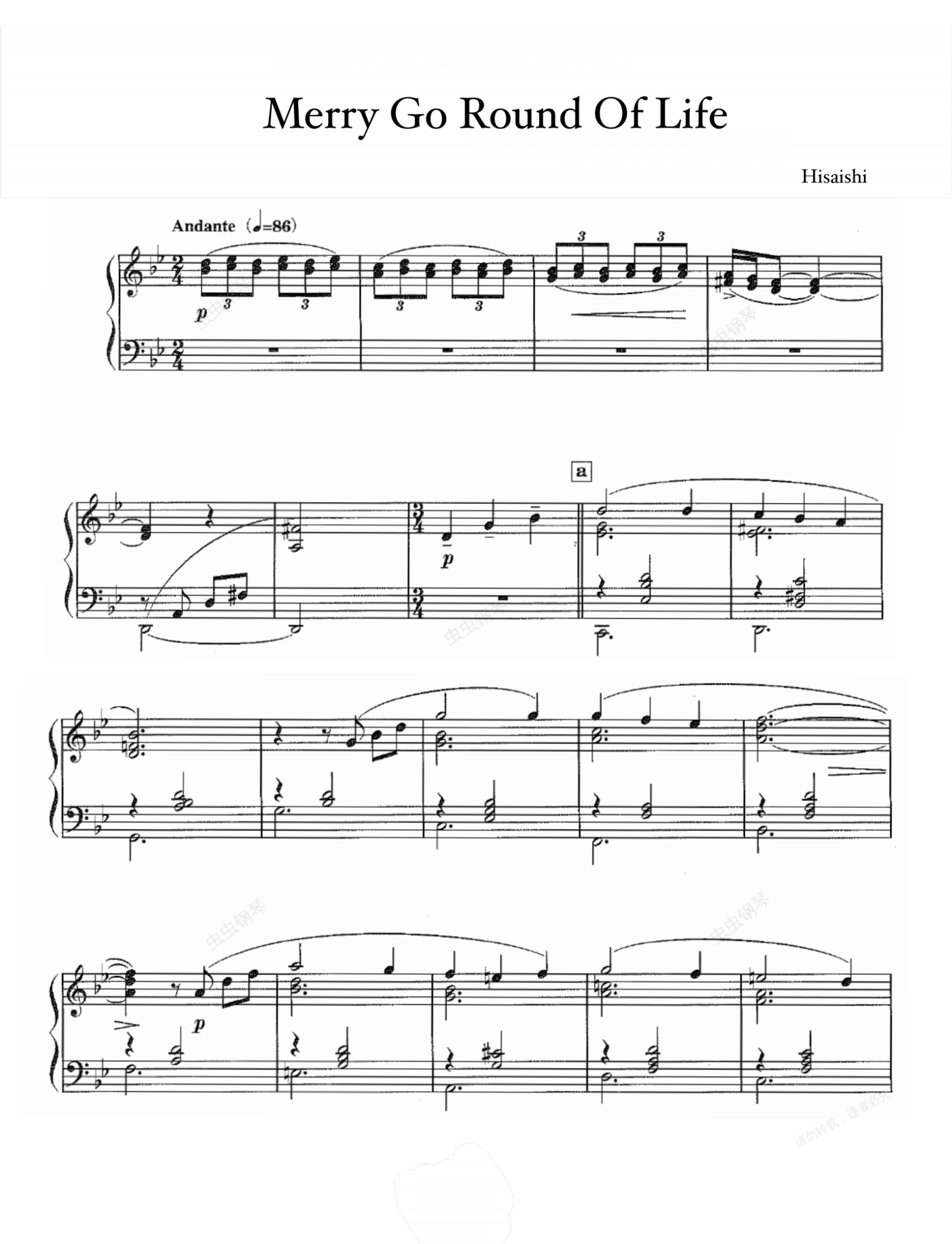 钢琴谱:Merry Go Round Of Life