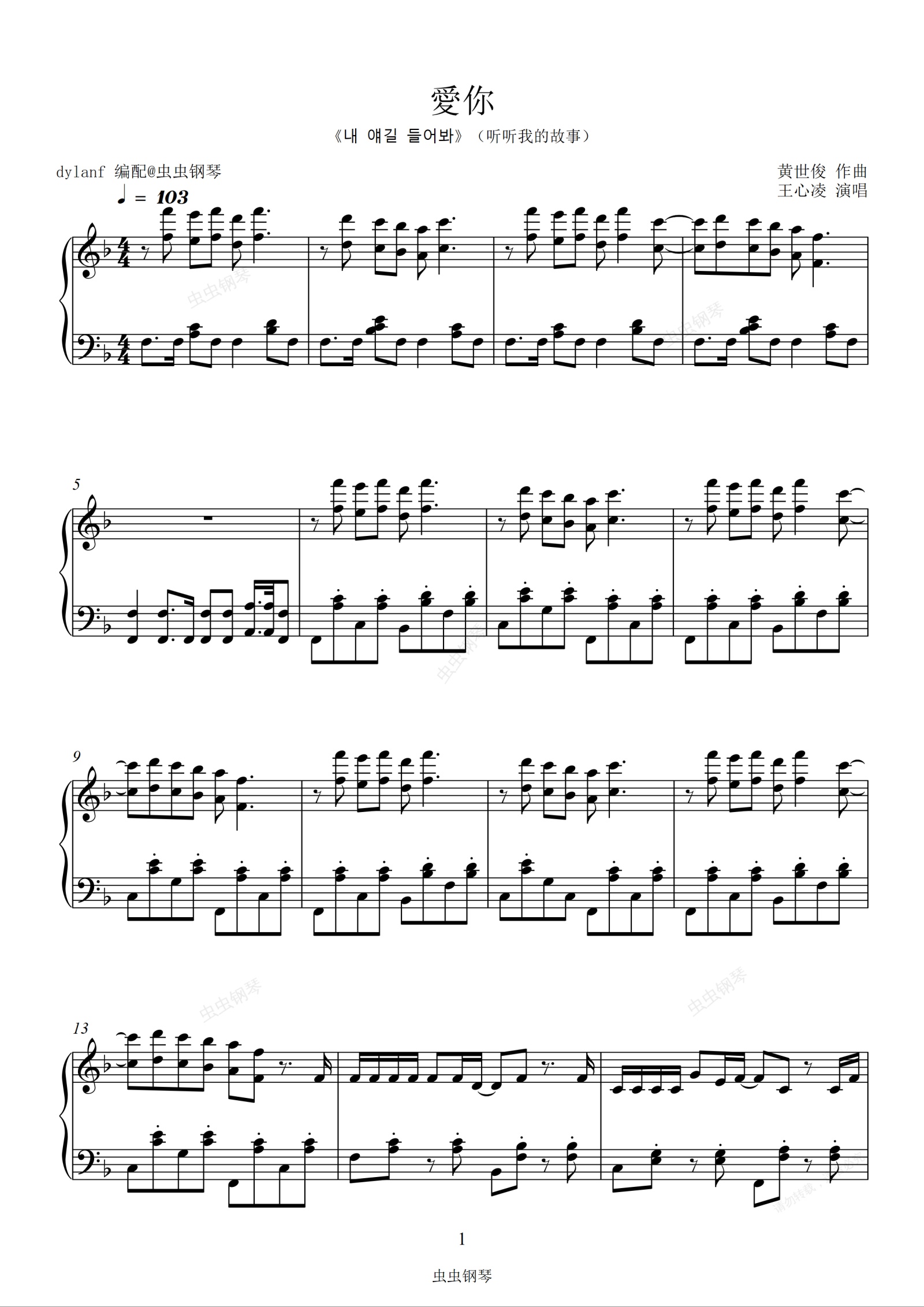 钢琴谱:好听易弹《爱你》99%还原 王心凌《내 얘길 들어봐》(听听我的故事)