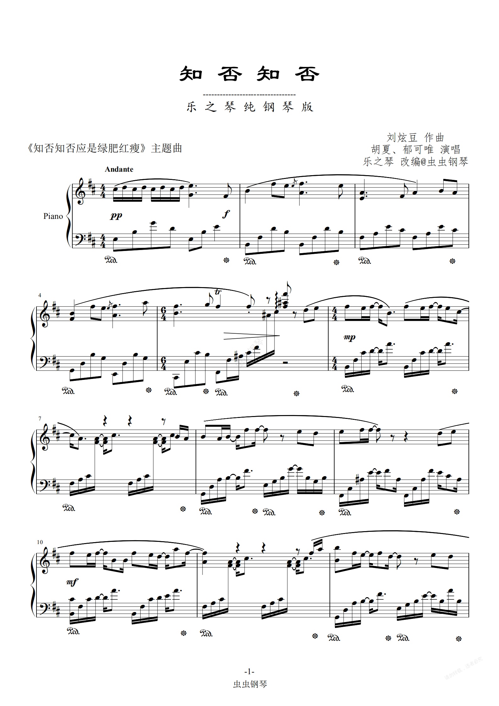 钢琴谱:知否知否-原调 乐之琴唯美版