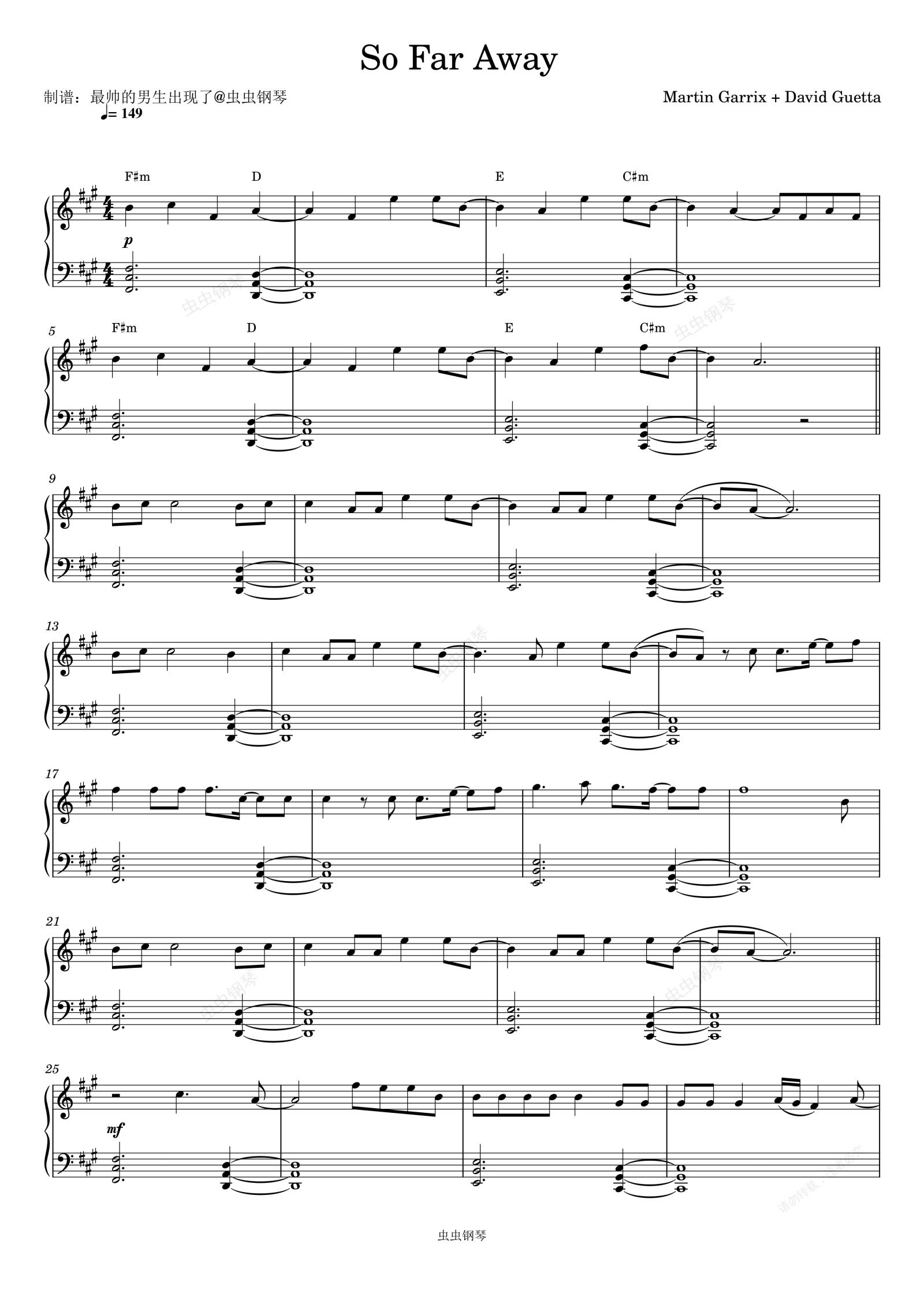 钢琴谱:So Far Away - Martin Garrix & David Guetta
