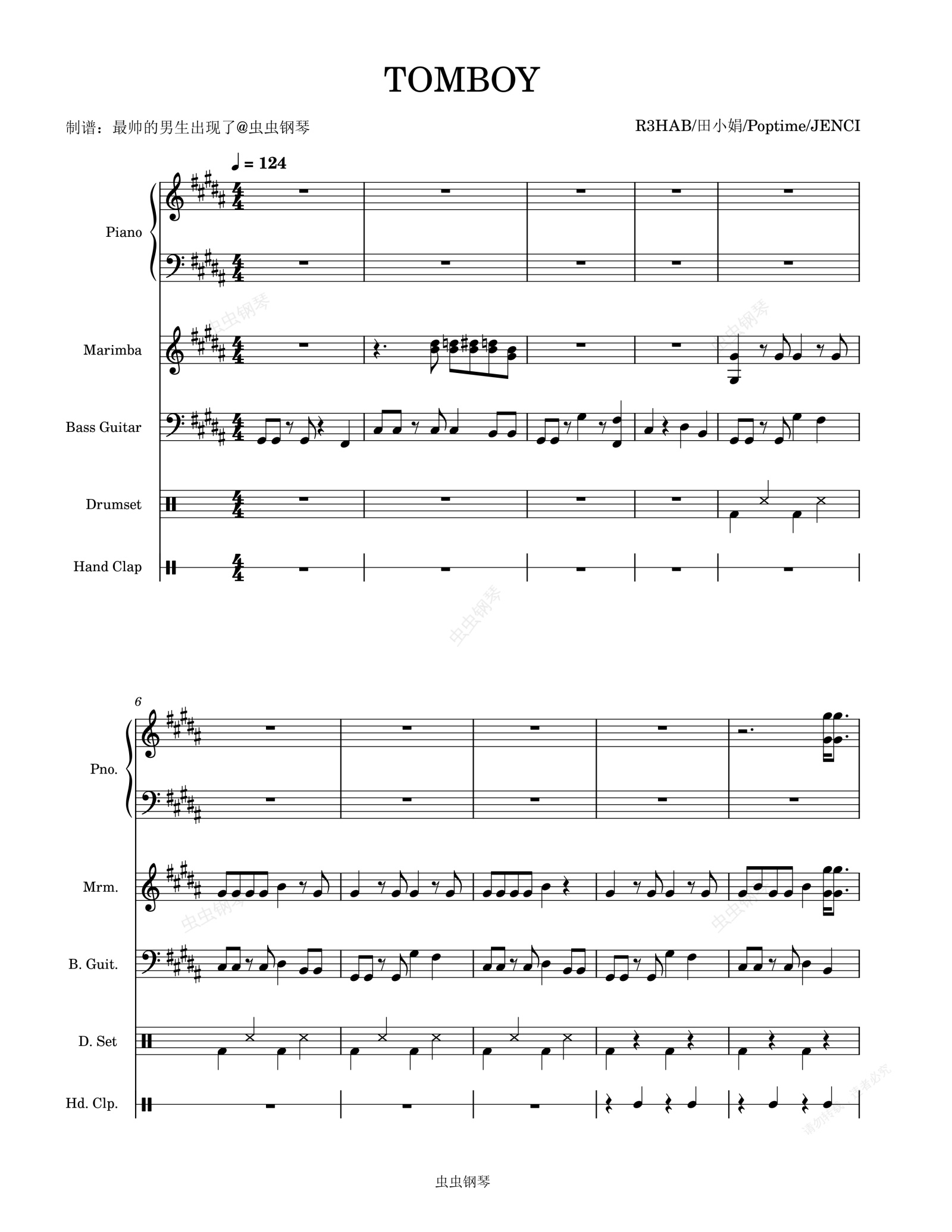 钢琴谱:TOMBOY - (G)I-DLE 器乐合奏总谱