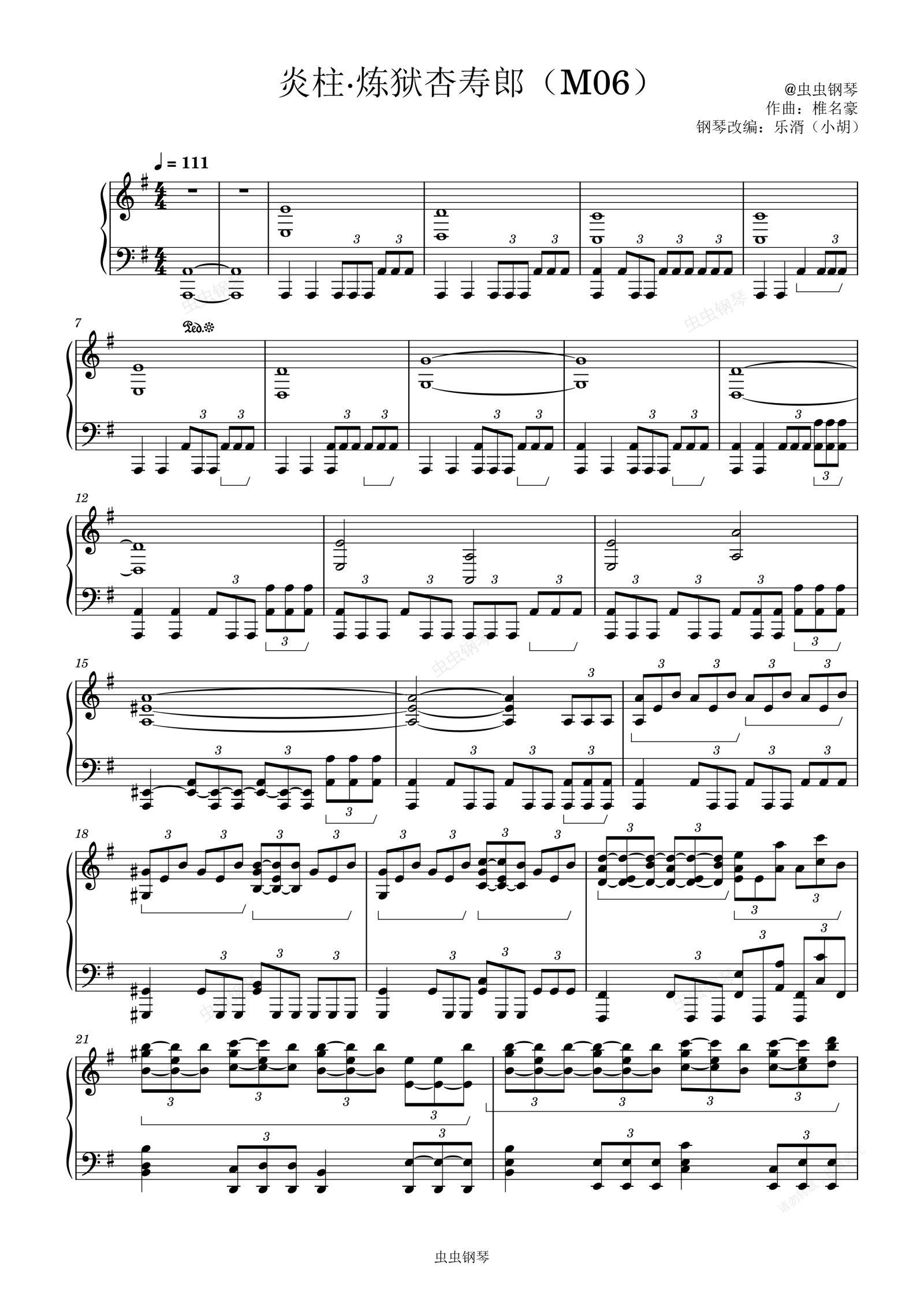 钢琴谱:炎柱·炼狱杏寿郎(M06)
