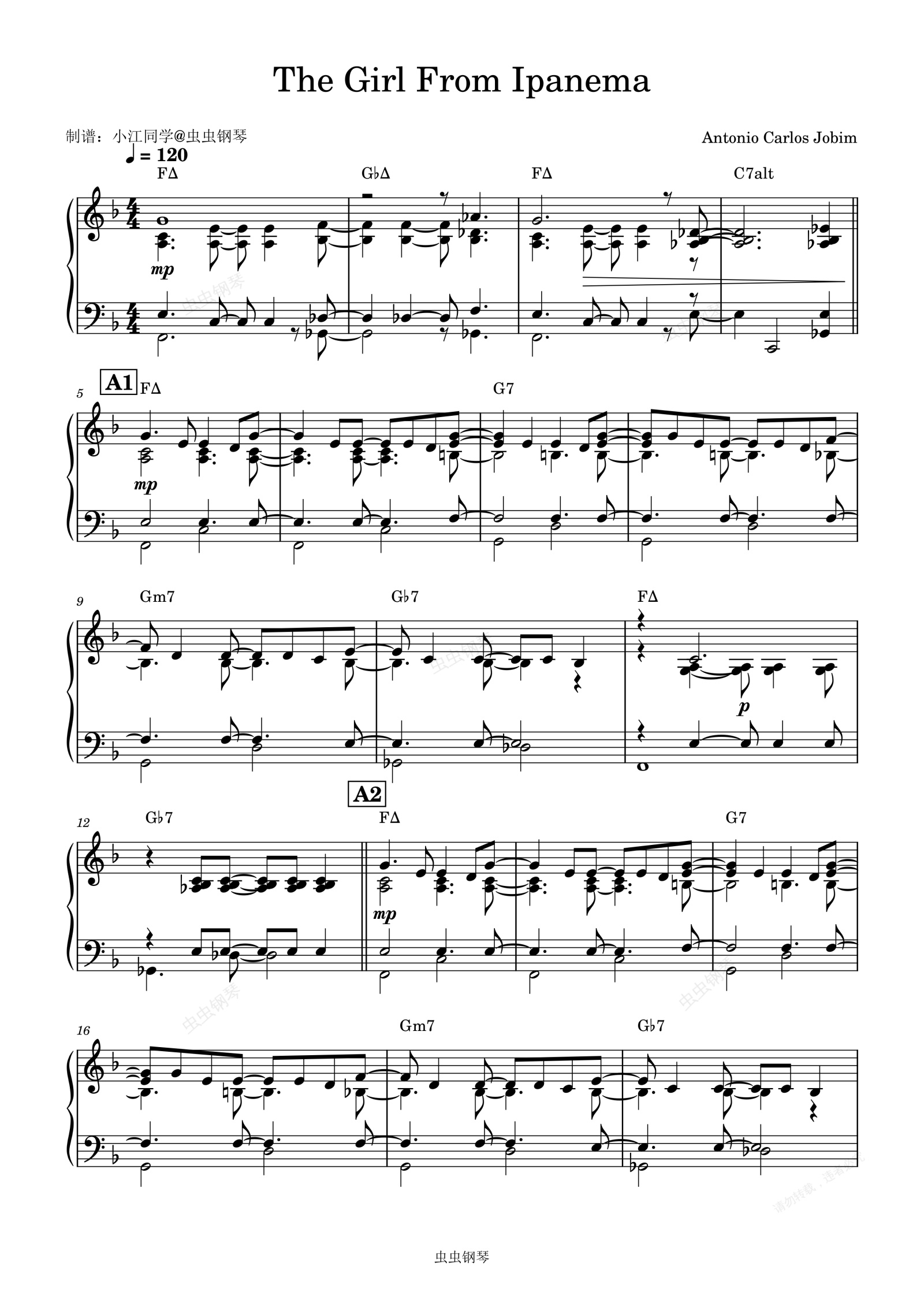 钢琴谱:The Girl From Ipanema 带和弦标记