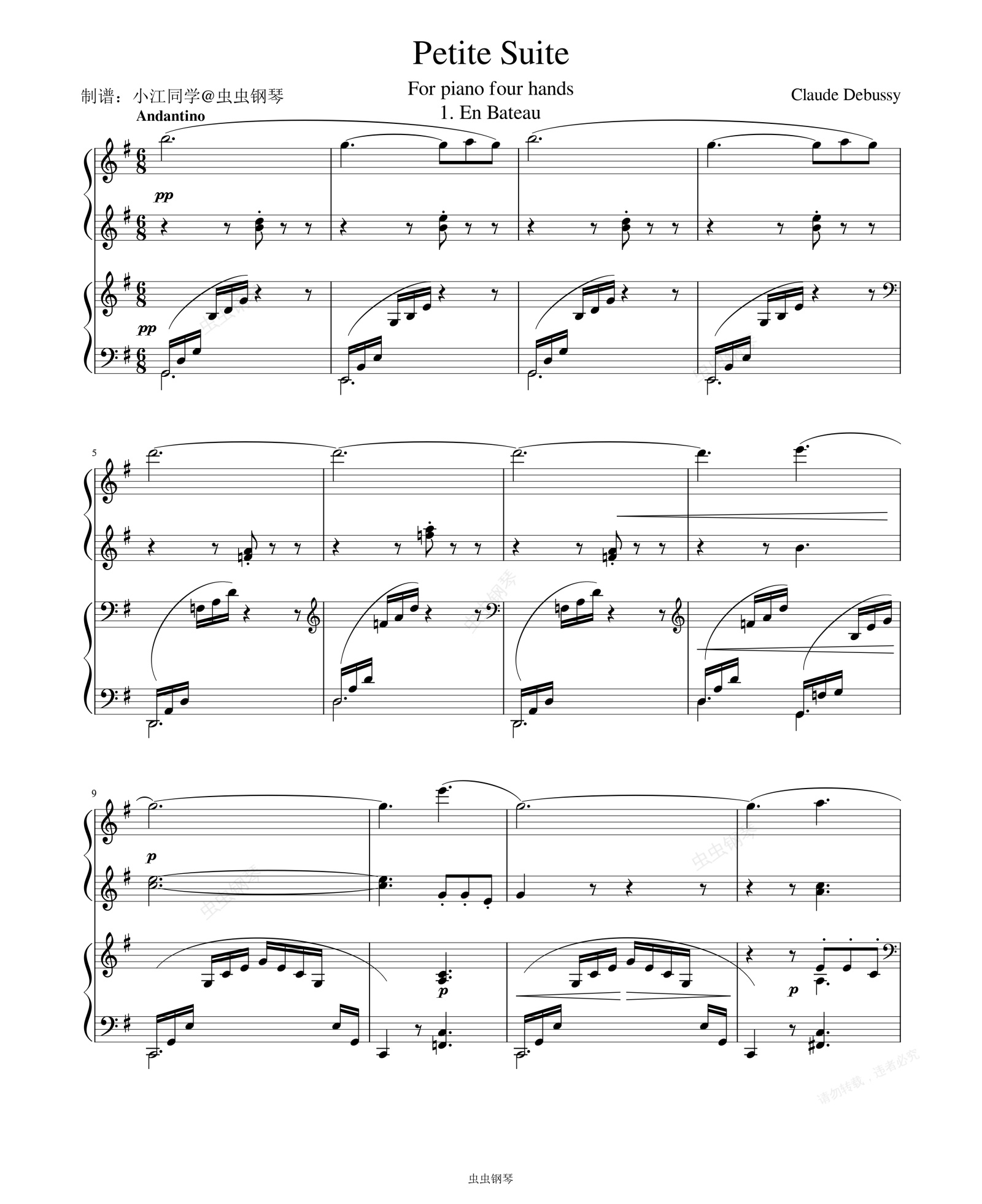 钢琴谱:En Bateau《小组曲》德彪西 四手联弹