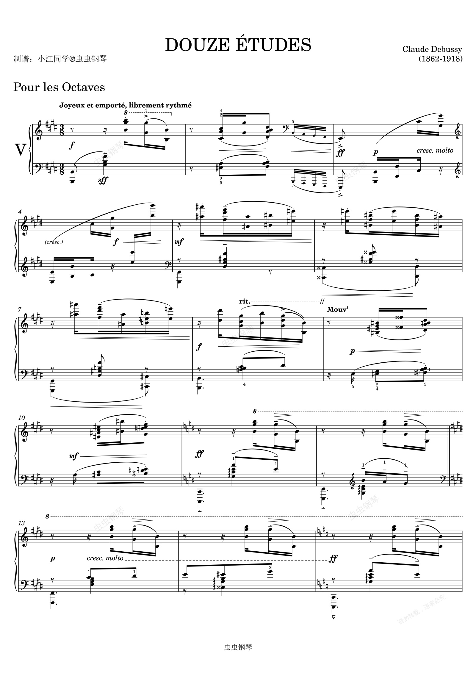 钢琴谱:第五首 德彪西练习曲