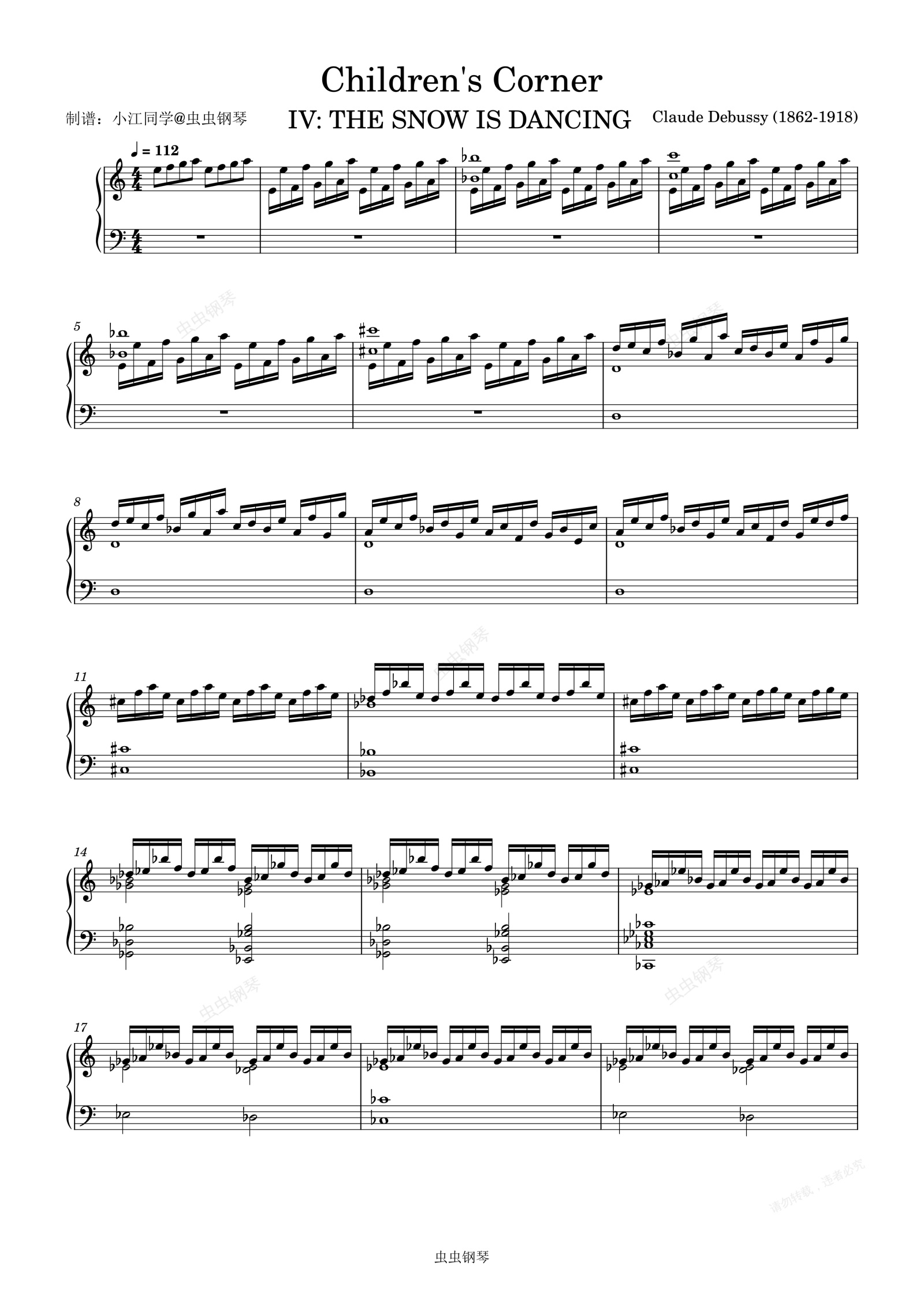 钢琴谱:雪花飞舞 德彪西(儿童园地)