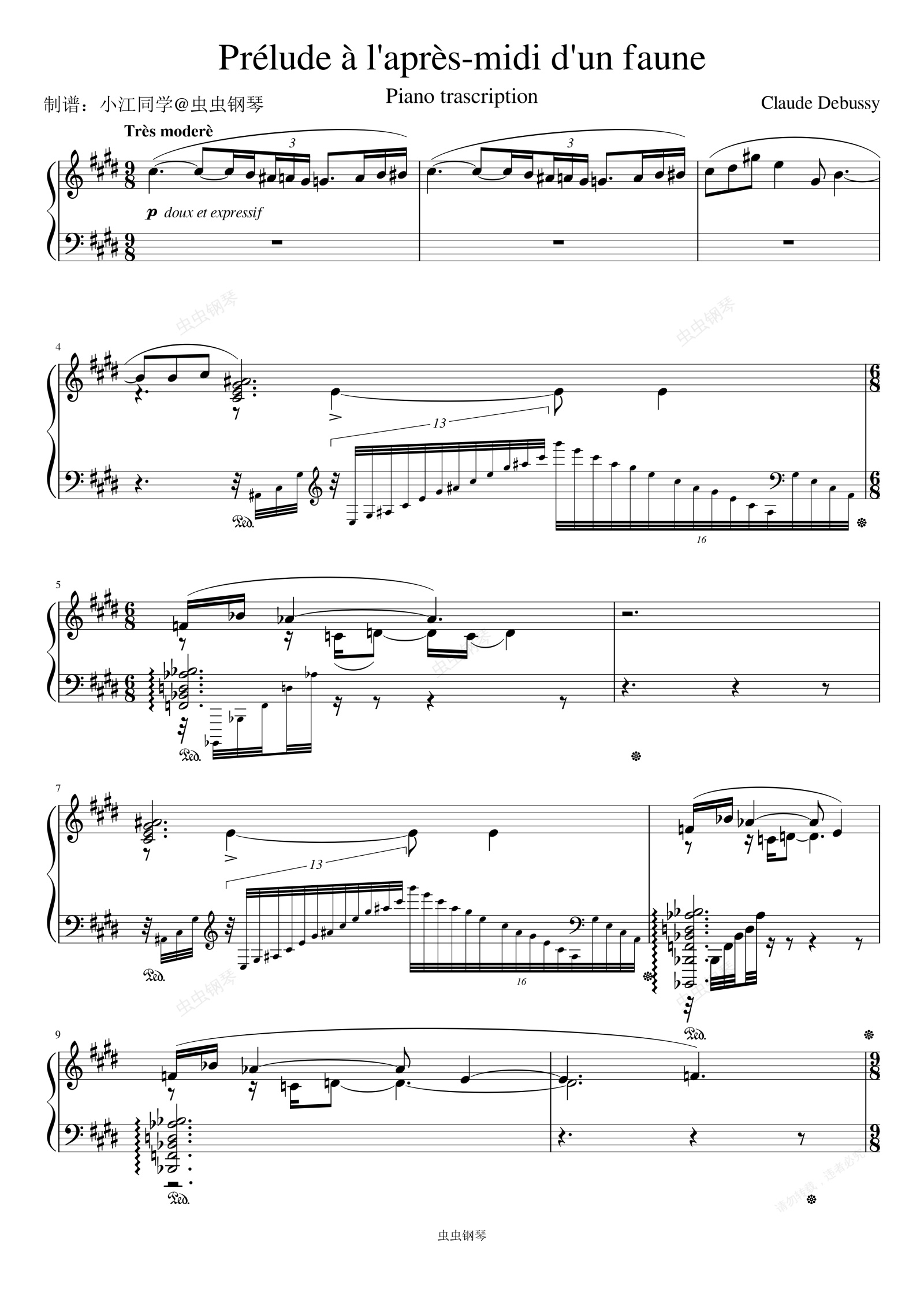 钢琴谱:牧神午后前奏曲 独奏版
