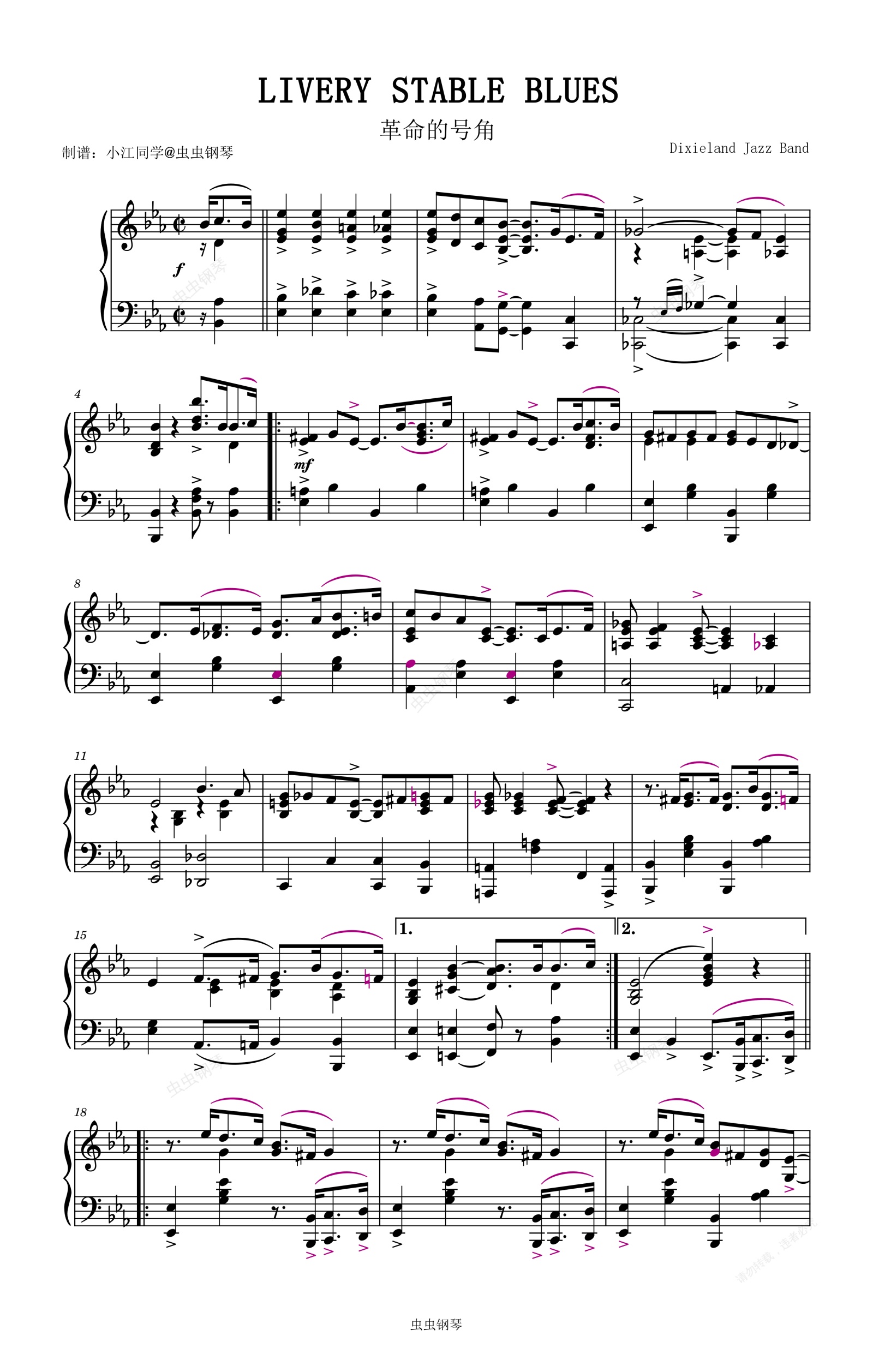 钢琴谱:LIVERY STABLE BLUES(革命的号角)