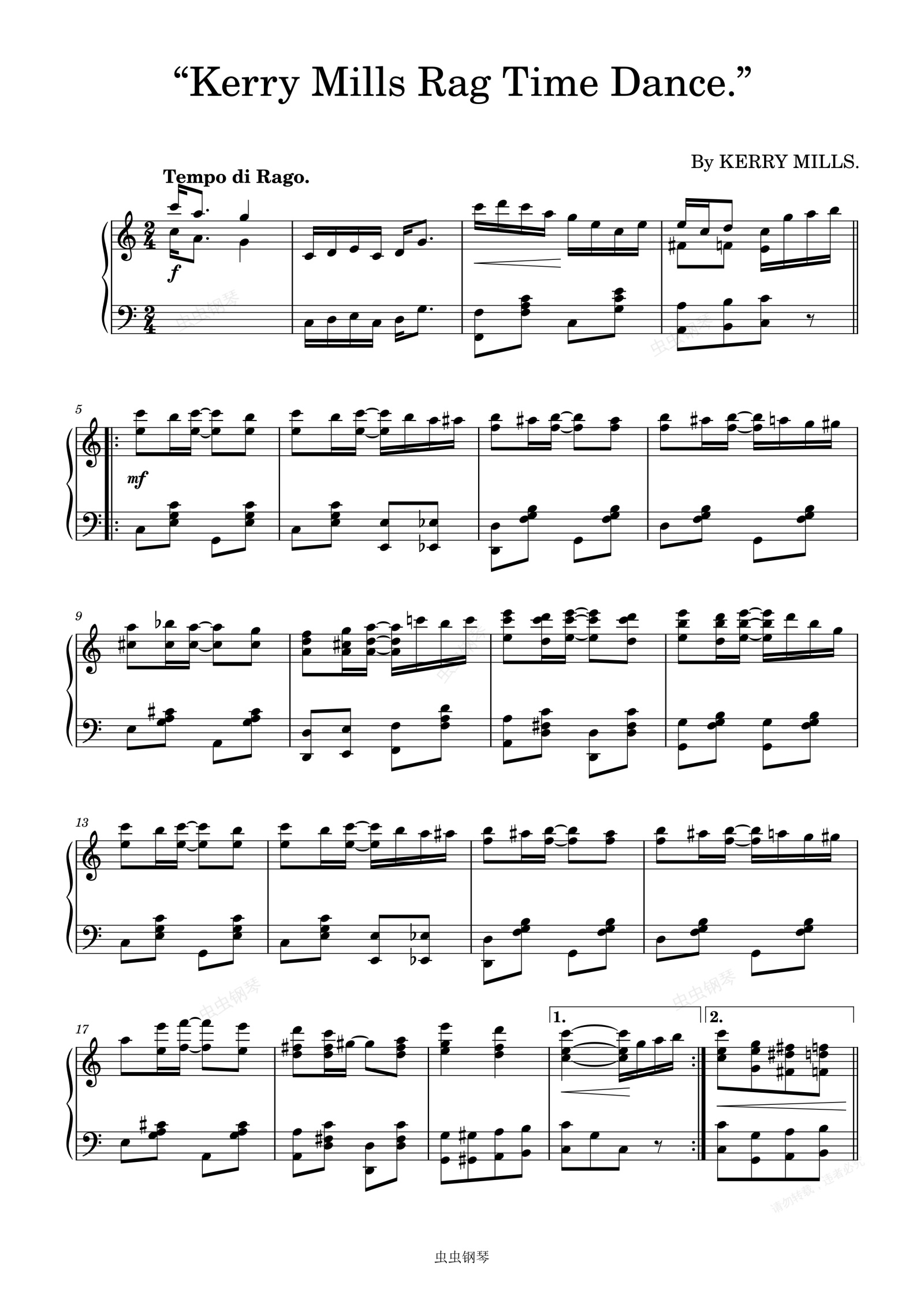 钢琴谱:Kerry Mills Ragtime Dance (1909)