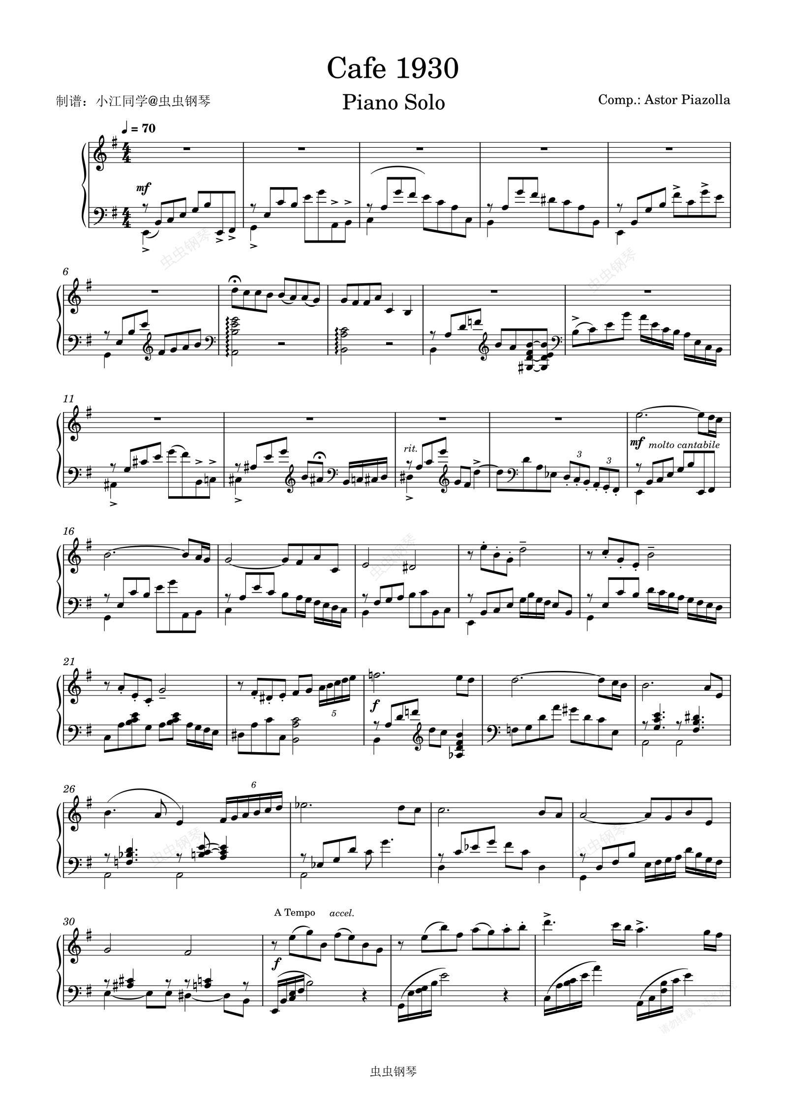 钢琴谱:Cafe 1930 独奏版