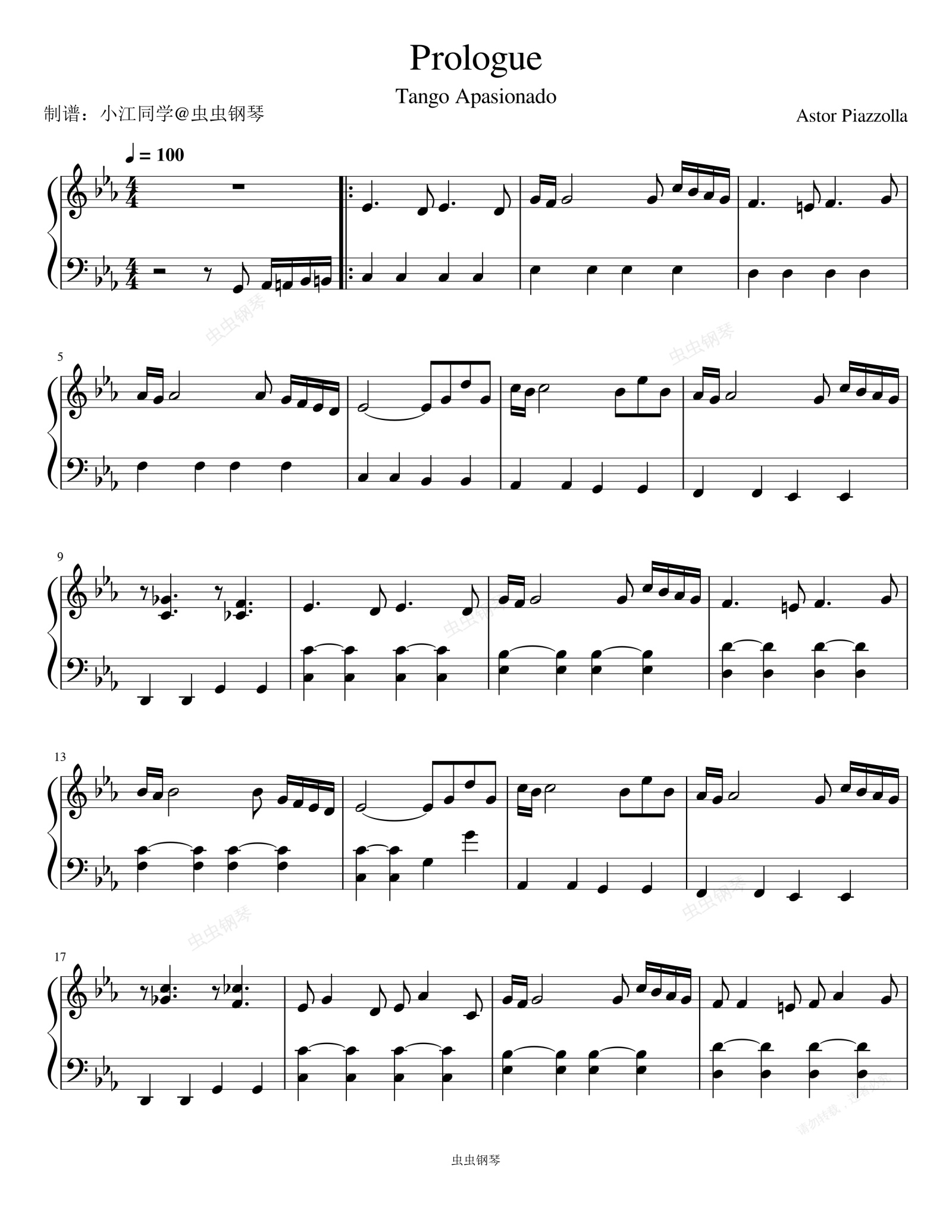 钢琴谱:Prologue 皮亚佐拉