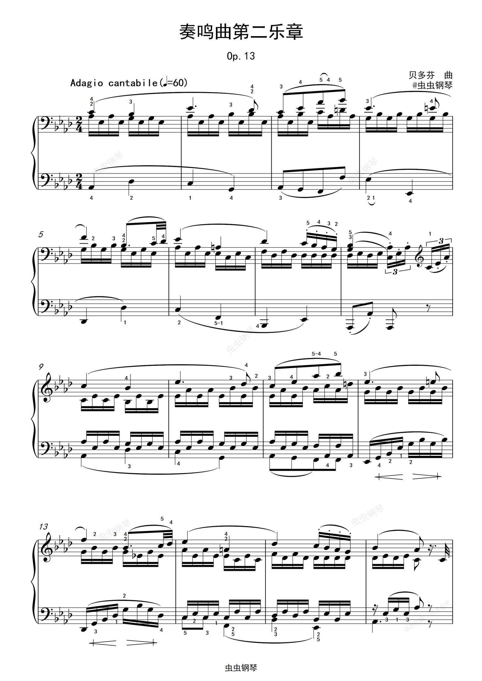 钢琴谱:9级-大型乐曲-奏鸣曲第二乐章 Op.13(贝多芬)