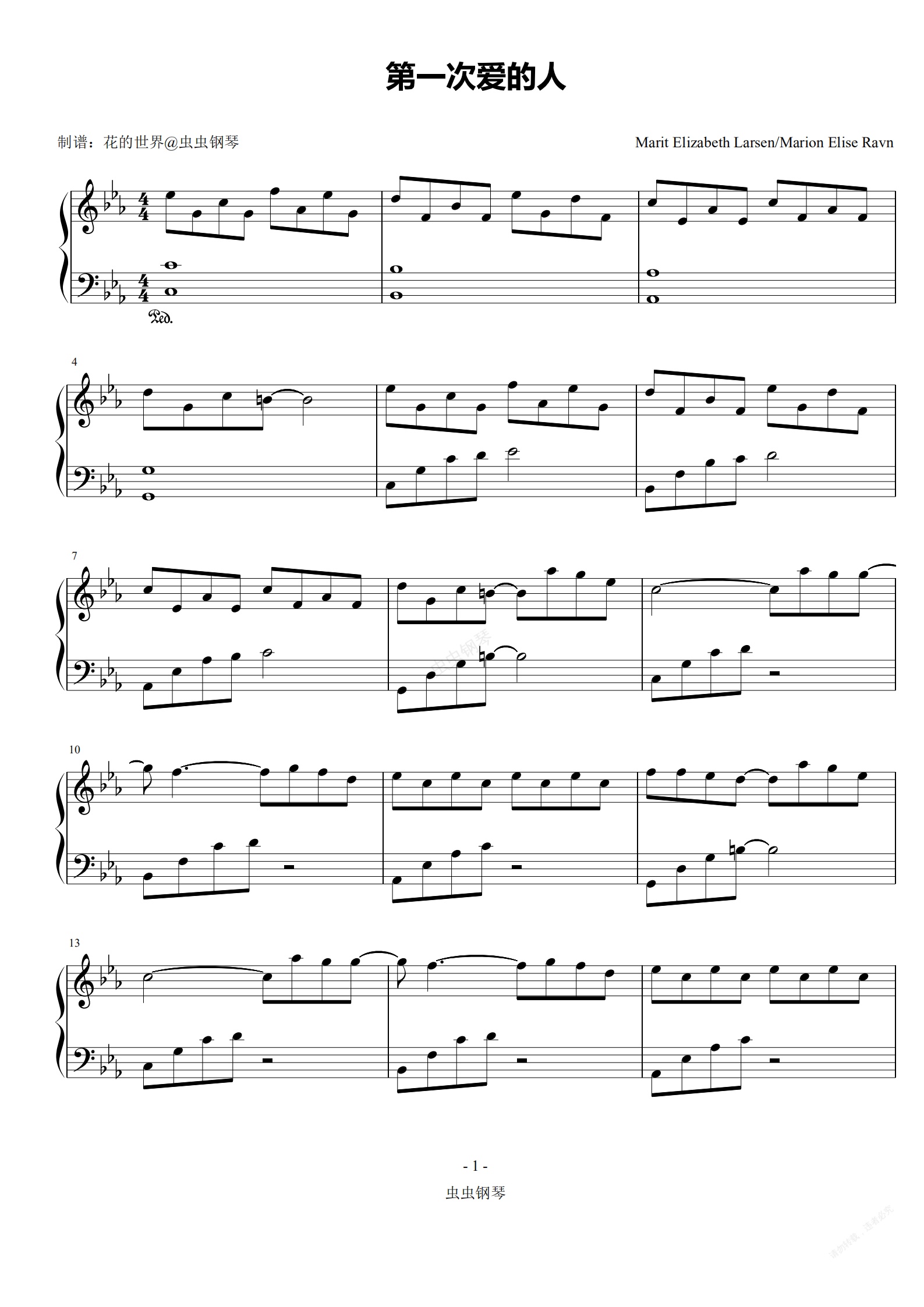 钢琴谱:第一次爱的人  原调简易版本  王心凌