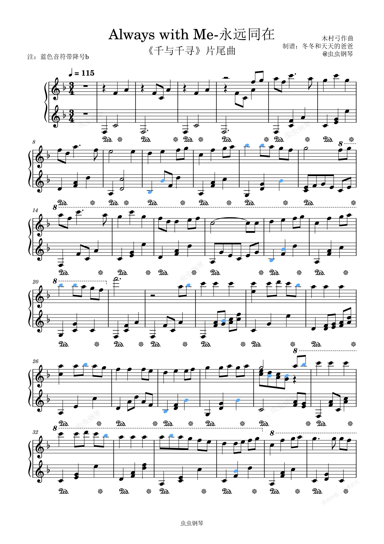 钢琴谱:Always with Me-永远同在《千与千寻》主题曲-F大调
