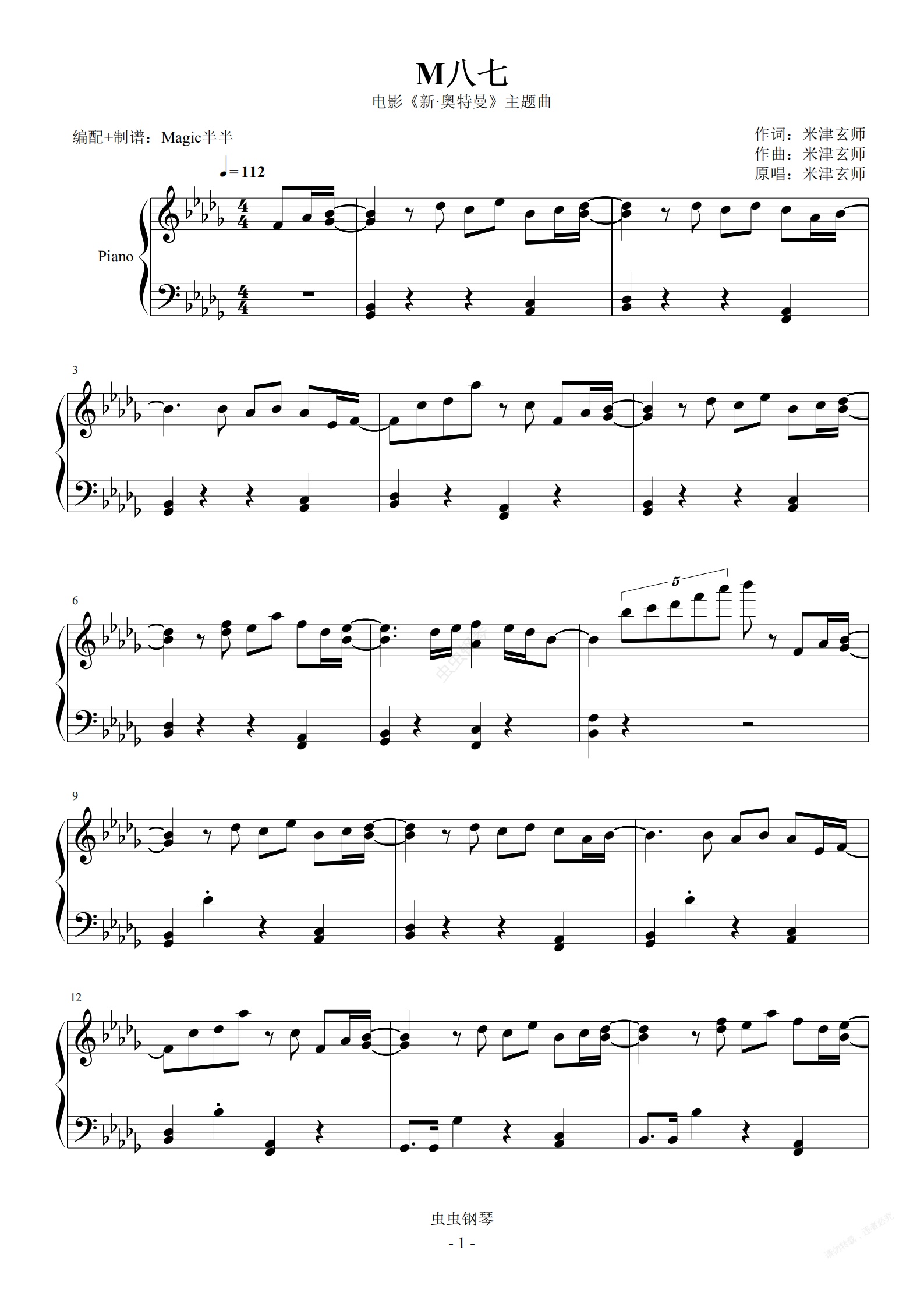 钢琴谱:M八七(完整版) 电影<新·奥特曼>主题曲