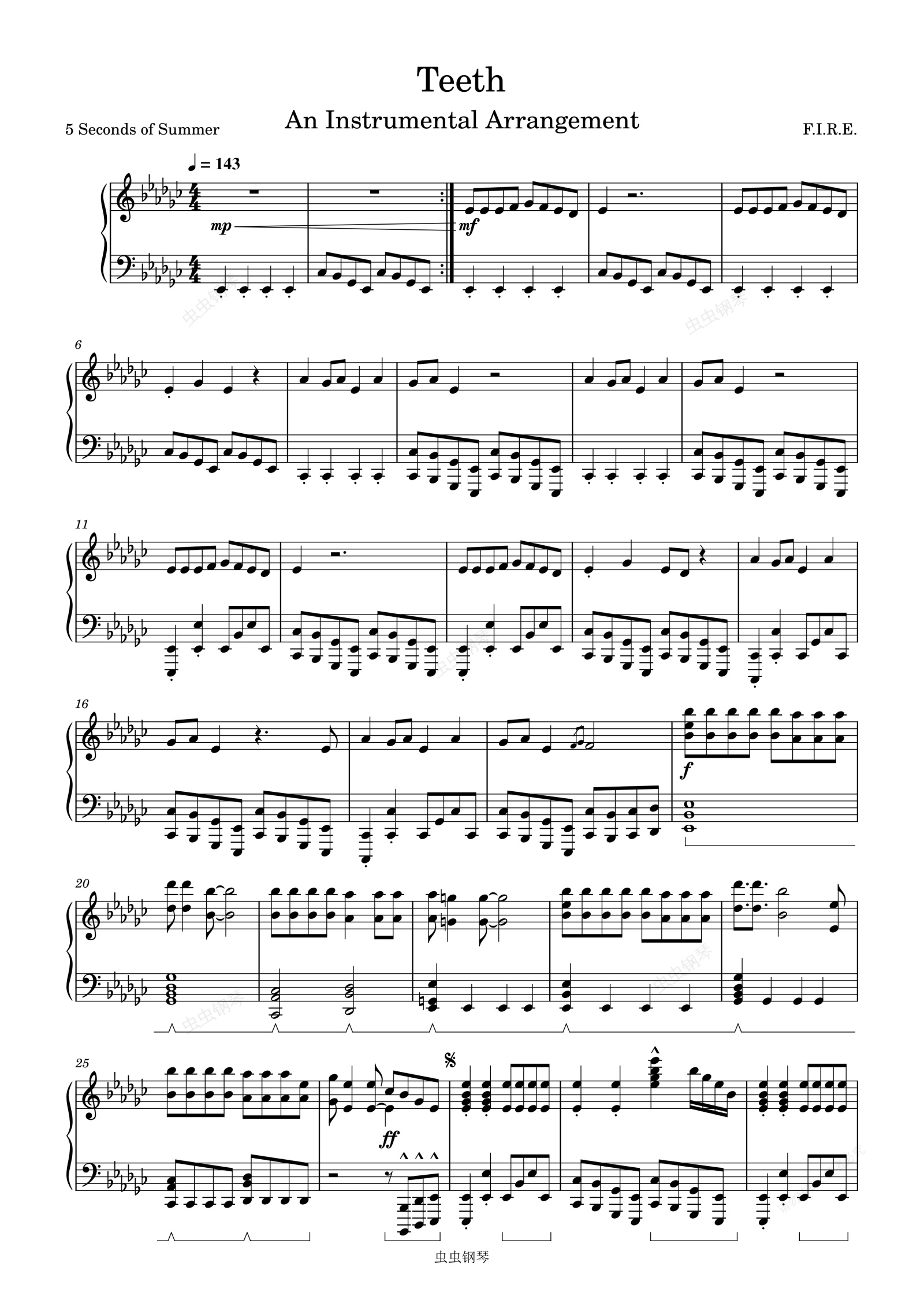 钢琴谱:Teeth-5 Seconds of Summer