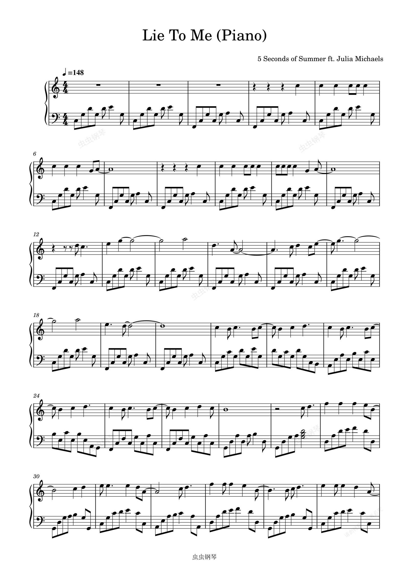 钢琴谱:Lie To Me-5 Seconds of Summer