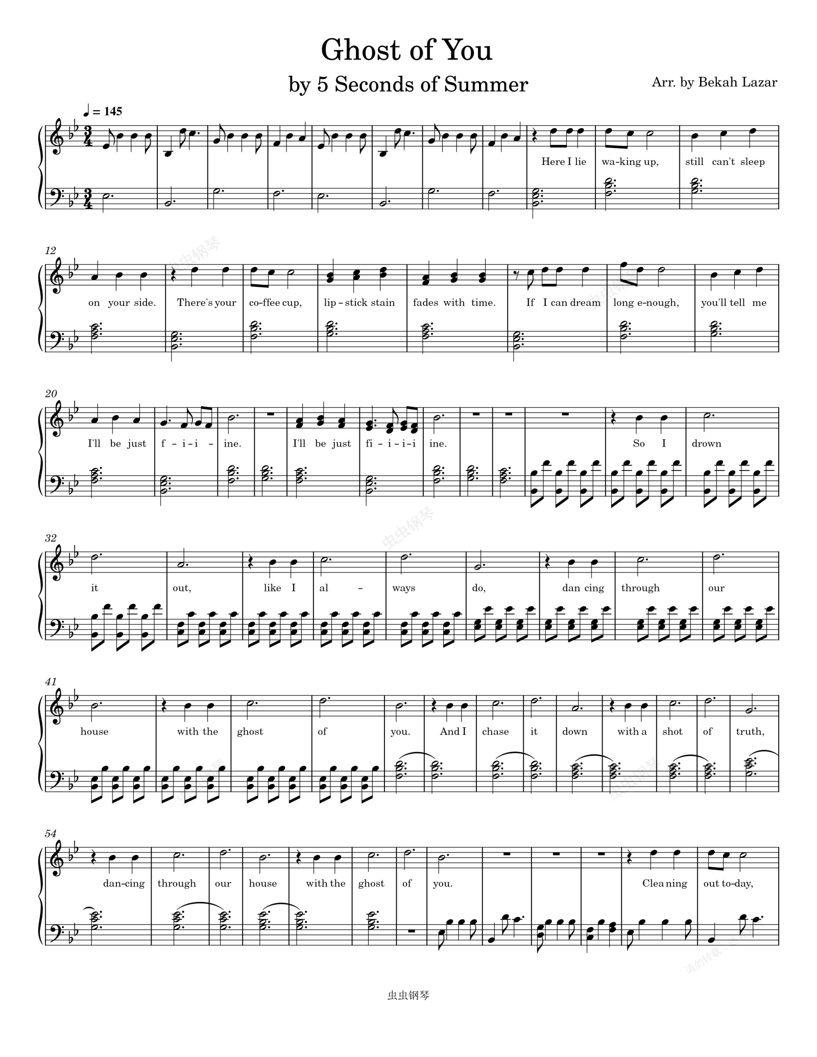 钢琴谱:Ghost of You-5 Seconds of Summer