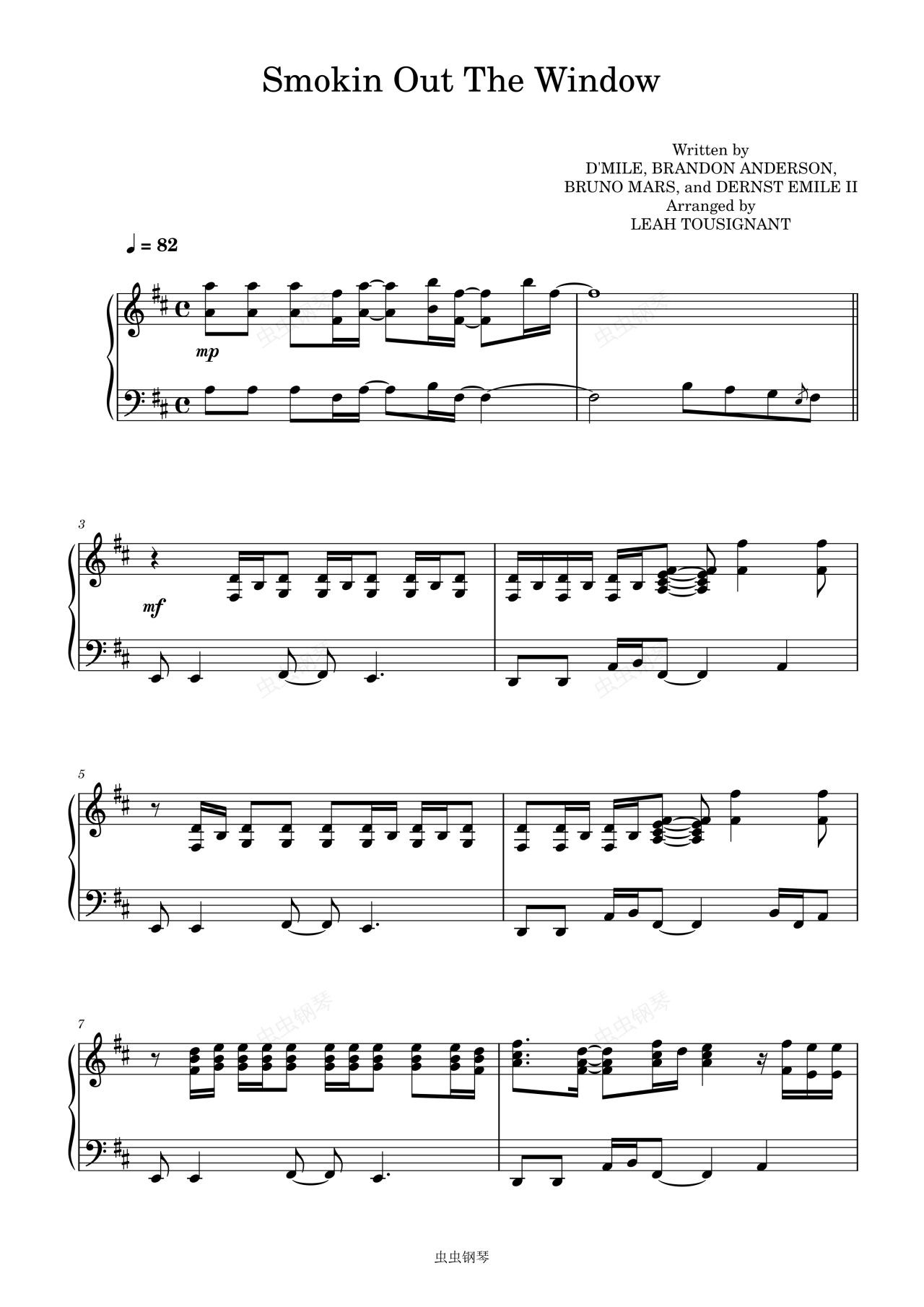 钢琴谱:Smokin Out The Window-Bruno Mars