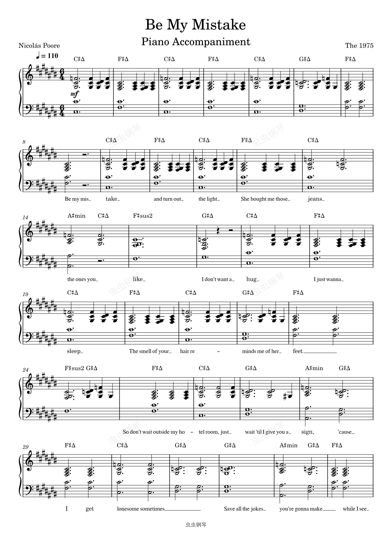 钢琴谱:Be My Mistake-The 1975