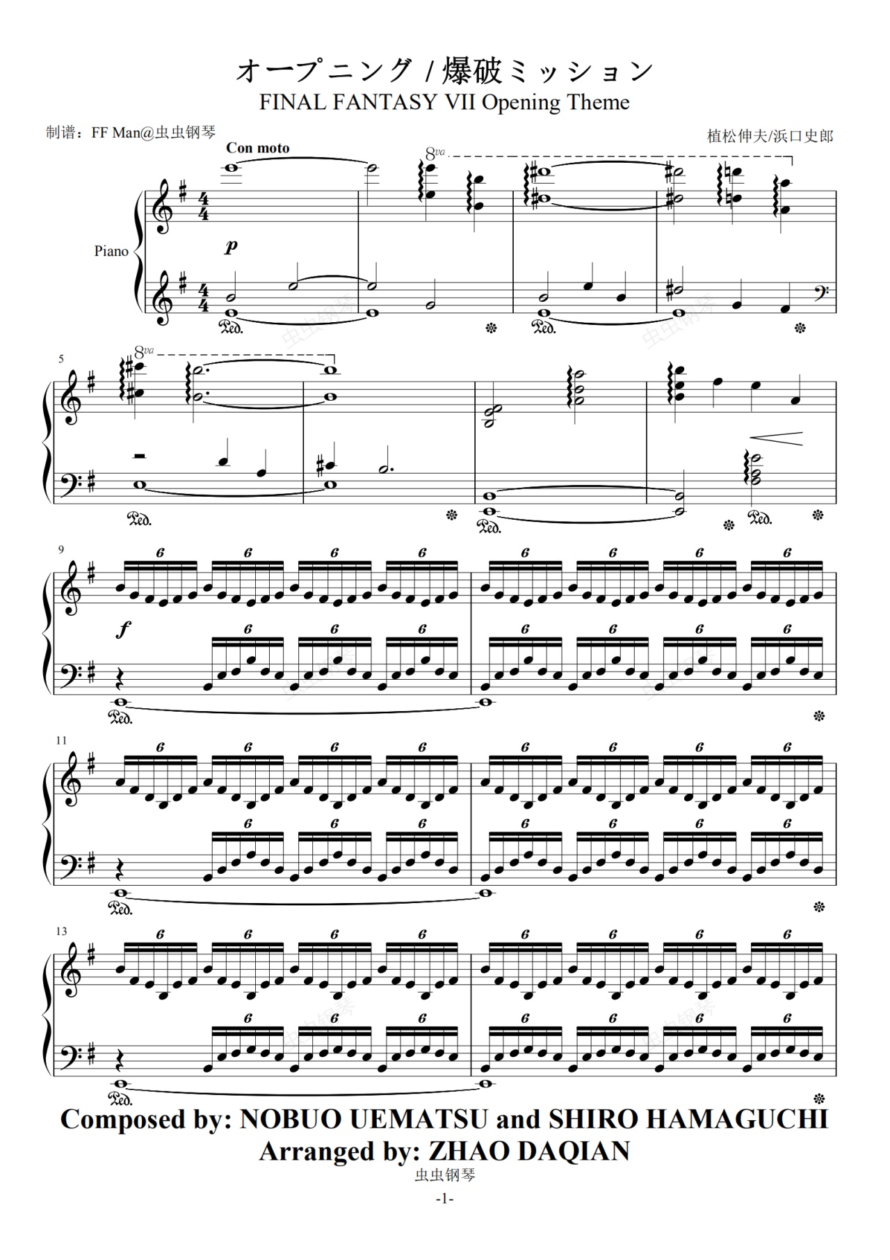 改编自植松伸夫的代表作品,《最终幻想VII》(FINAL VII)开场曲。这是《最终幻想VII》开篇组曲,核心危机的扎克斯(Zack Fair)出场后,反映了“雪崩组织”()的攻击。根据现在的版本可以联想到,一个寂静的夜晚,近处楼下停放的几辆大客车。当这些过去后,忽然一列疾驰而过的列车,打破了四周的宁静。可见有银发黑衣的萨菲罗斯()在车厢顶上,当列车驶出隧道后,灯火通明的繁华都市出现在眼前。然而列车缓缓停下来后,萨菲罗斯从列车顶上跳了下来,几个组织成员命令他冲出车站,开始了一场激烈的战斗。直至凯旋归来。
